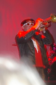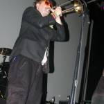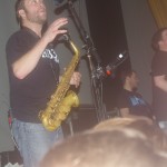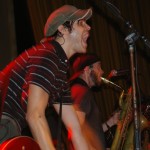 Next up was Streetlight Manifesto, whom I had thought were the headliners, so I was surprised they came on next.. Now, let me explain how much I love Streetlight Manifesto. The last time they played, in July of 2010, I delayed surgery I was having so I wouldn’t miss their show. I had to miss them the time before and wasn’t about to let that occur again. They opened with Watch It Crash, and the audience immediately began moshing and singing along. The seven-member band from New Brunswick, NJ includes two saxophone players, a guitarist/singer, a trombone and a trumpet plus a bass player and drummer. Thomas Kalnoky, lead vocals, guitar, bounced around the stage and looks very youthful. No one in that band stood still and neither did their audience. Security was kept very busy intercepting the crowd surfers who tumbled onto the stage in great succession and some had to be bodily carried off stage.