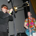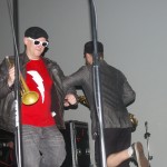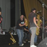 The highlight was during their performance of Suburban Rhythm, a song they always have fun with, by performing it disco style, rock style and whatever other style they feel like coming up with. When they did it square dance style, the sax player and trumpet player (John Christianson) locked arms and danced a square dance. When the song ended, they bowed to each other.