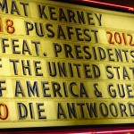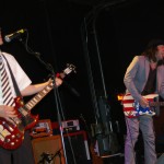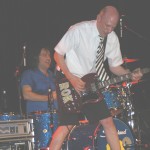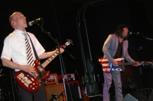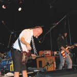 After hearing some more good songs from the break tape including Black Flag’s Six Pack, The Presidents came on stage and I immediately woke up. Front man Chris Ballew bounced onto the stage with child-like exuberance, and loaded with charisma. He dedicated the song Lady Bug to His little lady Katy, whom he mentioned he married on the same stage two years prior. He wore a white shirt with black and white striped tie and black shorts. Everything about this band is unconventional. New guitarist Andrew McKeag is the most rock star -looking member with long curls hanging to his shoulders, though he wore a bowler’s hat for much of the show while playing a guitar with an American flag painted on it. Drummer and founding member Jason Finn tore up the skins so ferociously I was surprised they didn’t catch fire. He looked like he had a brand new kit, though, so perhaps . . .
