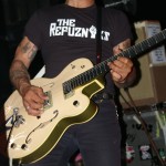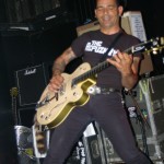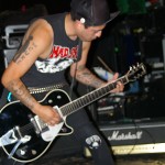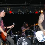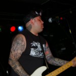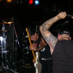 Radio Threat were the second band on the bill. From Ventura, California, they are, Favio – Vox / guitar, Johnny No Sleeves / Guitar, Erick / drums, and Bobby Ramone /Bass. It’s hard not to like these guys with their zany, non-nonsense hard rock with punk attitude mixed in. Their songs are catchy, yet hard core and complete with three-part harmony. Guitarist Johnny wears a fox tail attached to a back belt loop and it dangles next to the Misfits skull patch stuck on his back pocket. As I said, it was a night for animal tails for some reason. These guys are like one wild, rock and roll party on stage and are a ton of fun to watch. They’re a relatively new band though one wouldn’t know it by watching them. They’re pros on stage with as much prowess as an of the more seasoned bands.
