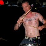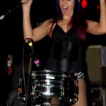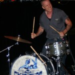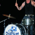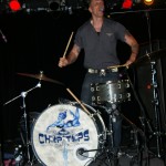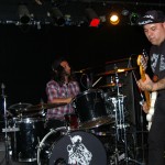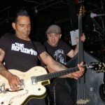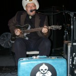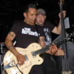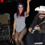 Preceding The Chop Tops was singer/guitarist Danny B. Harvey. He’s a gray-haired dude with a cowboy hat who sits on a chair and plays. Although originally from Texas, Danny B. has lived all over the globe, including New York and England and has played with such legends as The Stray Cats and The Pole Cats. Although he claims to have moved to New York at age six, he maintains that Texas style in his music. He plays guitar with such prowess, you can’t help to be awestruck. His partner on stage this night was a woman calling herself Necrofoxx. She stood behind a drum kit wearing a short gray t-shirt and fishnet stockings, sported long, thick locks dyed purple and blue. She almost stole the show and when she shed the t-shirt revealing a skimpy black body suit, the front of the stage was suddenly awash with frothing men. She was more than just a sex kitten, though. She could whale on those skins with manic passion while exuding charisma. She even sang some songs solo as well as duet swith Danny B. Her vocals were gutsy and gritty and the perfect complement to Danny’s powerful and gravelly voice. The duo was more billy than psycho and played stellar covers of such classics as Smokestack Lightning and Hit the Road, Jack. Their music was a little R&B, a little rockabilly and a little country all blended together. They were great fun to watch and I highly recommend them.
