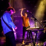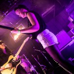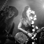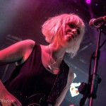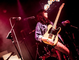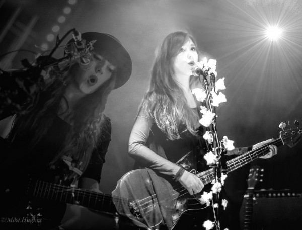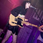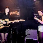 So having waited in vain, we left Filter Distortion unheard and dived back indoors to see Bird. Like everyone else tonight, they were a band I hadn’t yet seen perform, but when they got on stage I had an a-ha moment, “…oh, that’s who was standing next to me at the Savages gig…” So many bands there are out there, but this lot have really got something going on. The band recently became a three piece. It’s not always been that way – but it’s now firmly Sian and Adele, with Alexis hitting things, gently, at the back. The stripped down format suits them. Gosh, they were good, gauzy vocals floating between the two girls. Adele’s swirling over-size chiffon sleeves and the string of flower fairy lights tells you a lot of what you need to know about this band. That and the fact that they can sound like an English madrigal society while covering Bauhaus track “Bela Lugosi Is Dead.” Tonight had two very definite high points, of which Bird were the first.