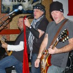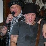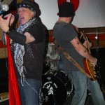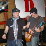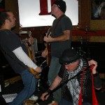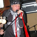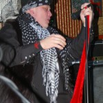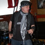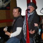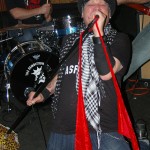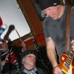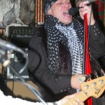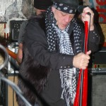 The final band was another I’d never seen nor heard of, Demolition Kings. The second they hit the stage I was blown away by their power. The Demolition Kings are, Sean Burnell : Guitar, Mike Ditmore : Drums, Daniel Macellar: Bass, Spot : Guitar, Dave Eronemo : Vocals. It is the showmanship of singer Dave Eronemo that steals the show. He came on stage clad in two scarves and a blower’s hat and strutted about the stage like Jagger on steroids. Demolition Kings are a guitar heavy, hard rocking and tons of fun band. I was surprised the stage didn’t catch fire from their energy. In their music I heard elements of The Stones and elements of The Ramones and Sex Pistols. As the show wore on, Demolition Kings sounded a little less like The Stones and a little ore like hard-core punk. They even performed a cover of the old Psychedelic Furs song “Pretty In Pink” with guitar taking over for the memorable sax played by Duncan Kilburn over thirty years ago. Demolition Kings are a lot of fun and should be seen by any fan of old school punk and old school rock (The Stones were the punks of their time anyway). I cannot recommend any of these bands enough and am so glad I had the opportunity to witness the fine performances from all of them.