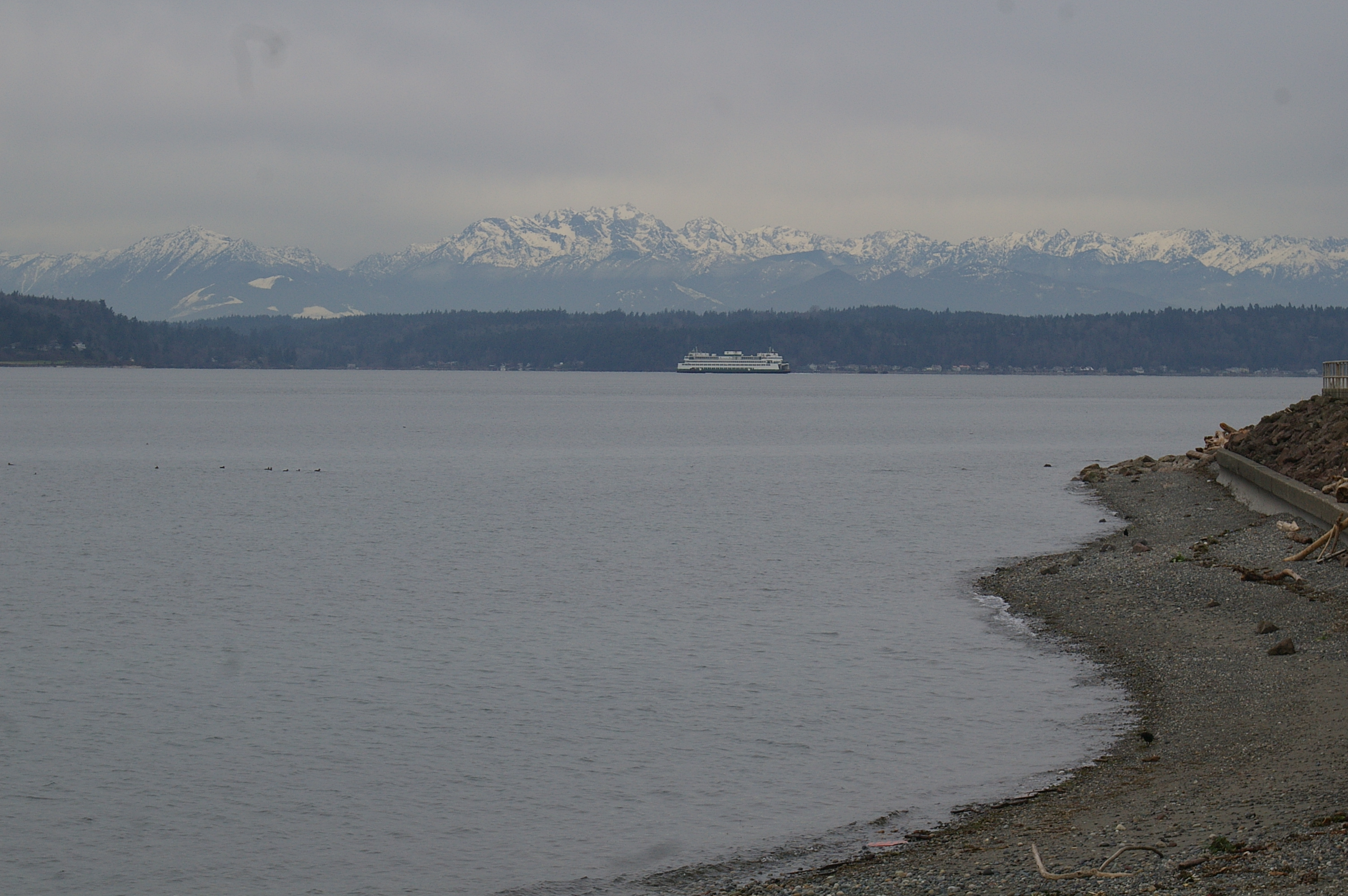 A Puget Sound Beach and the Olympic Mountains