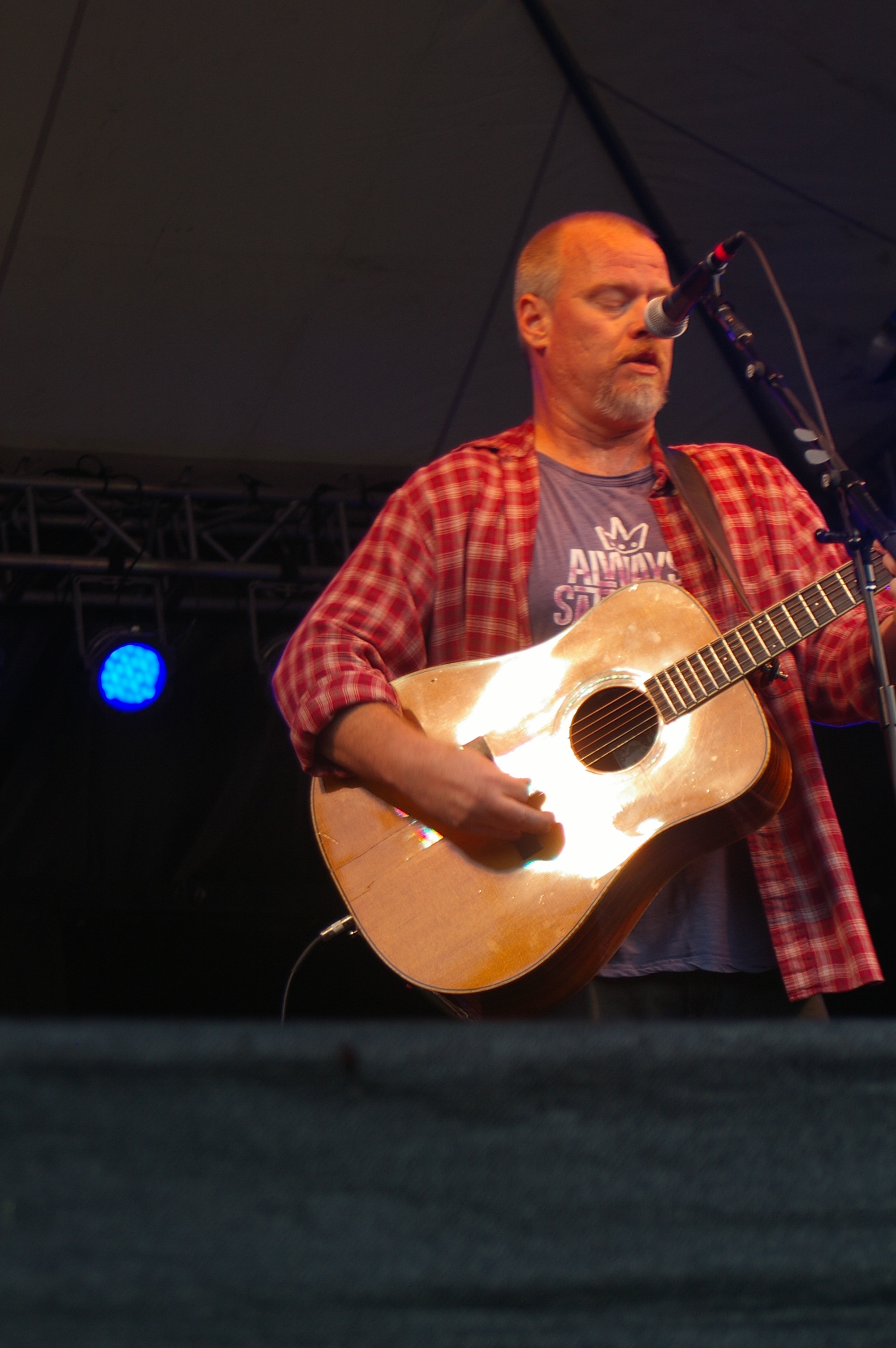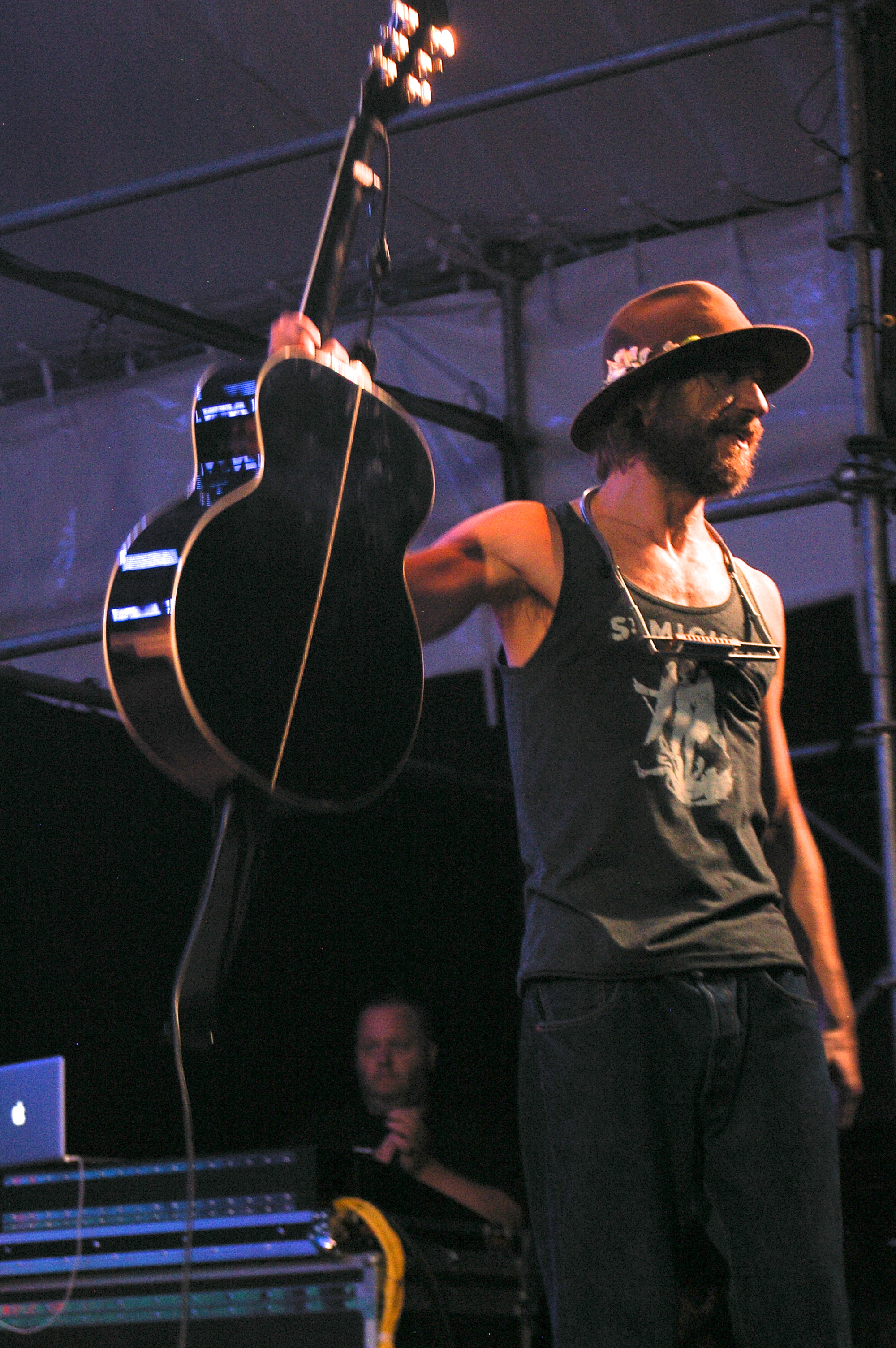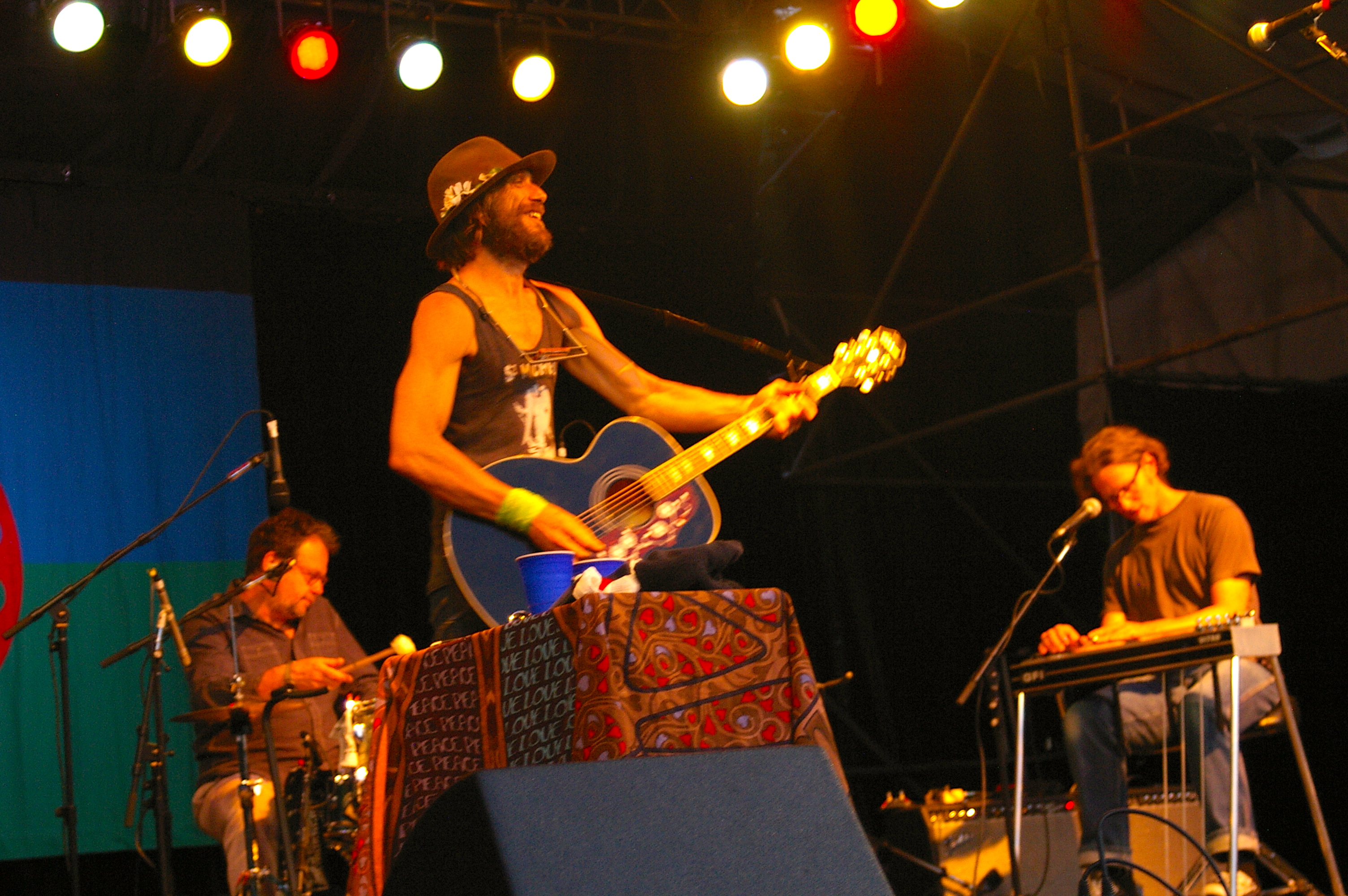 The fourth performer and headliner was Todd Snider himself. He came out looking like a young Bob Dylan, unshaven, wearing a fedora, dark glasses and barefoot. Complete with harmonica and acoustic guitar, I almost felt like I’d wandered into a time machine. Accompanied by a drummer and lap steel player, the immediate difference between him and Dylan is that he can sing. He began his set with a song about legendary Northwest Hijacker D.B. Cooper before warning the audience that being a folk singer, he’d be sharing his opinions with everyone, but not because he felt he was right or to try and change anyone’s mind, but because they rhyme. He then went on to say that the war on drugs is being funded by alcohol and tobacco and not because they care about people being on drugs, but just ensure we’re on the right drugs. He then made reference to Washington recently legalizing marijuana, which brought up raucous cheers from this almost all white audience ages thirty and up (aside from the children attending). He talked of the churches being more afraid of gays marrying than anything else and lit into a cover of Dylan’s The Times They Are A Changing.
