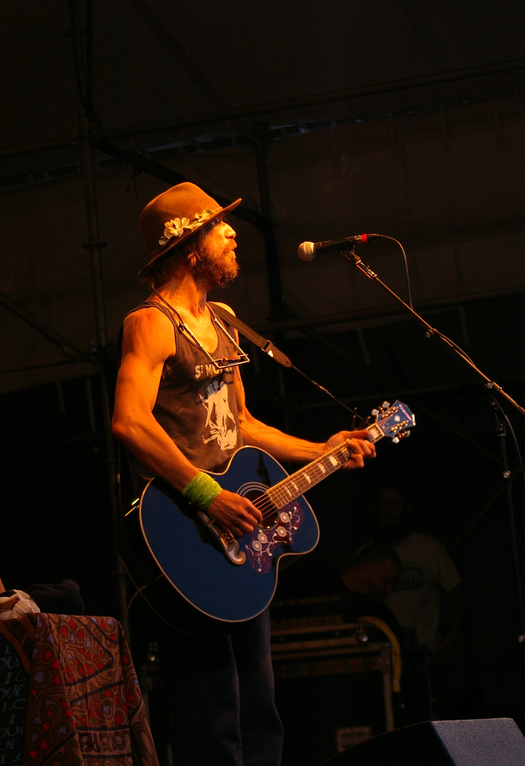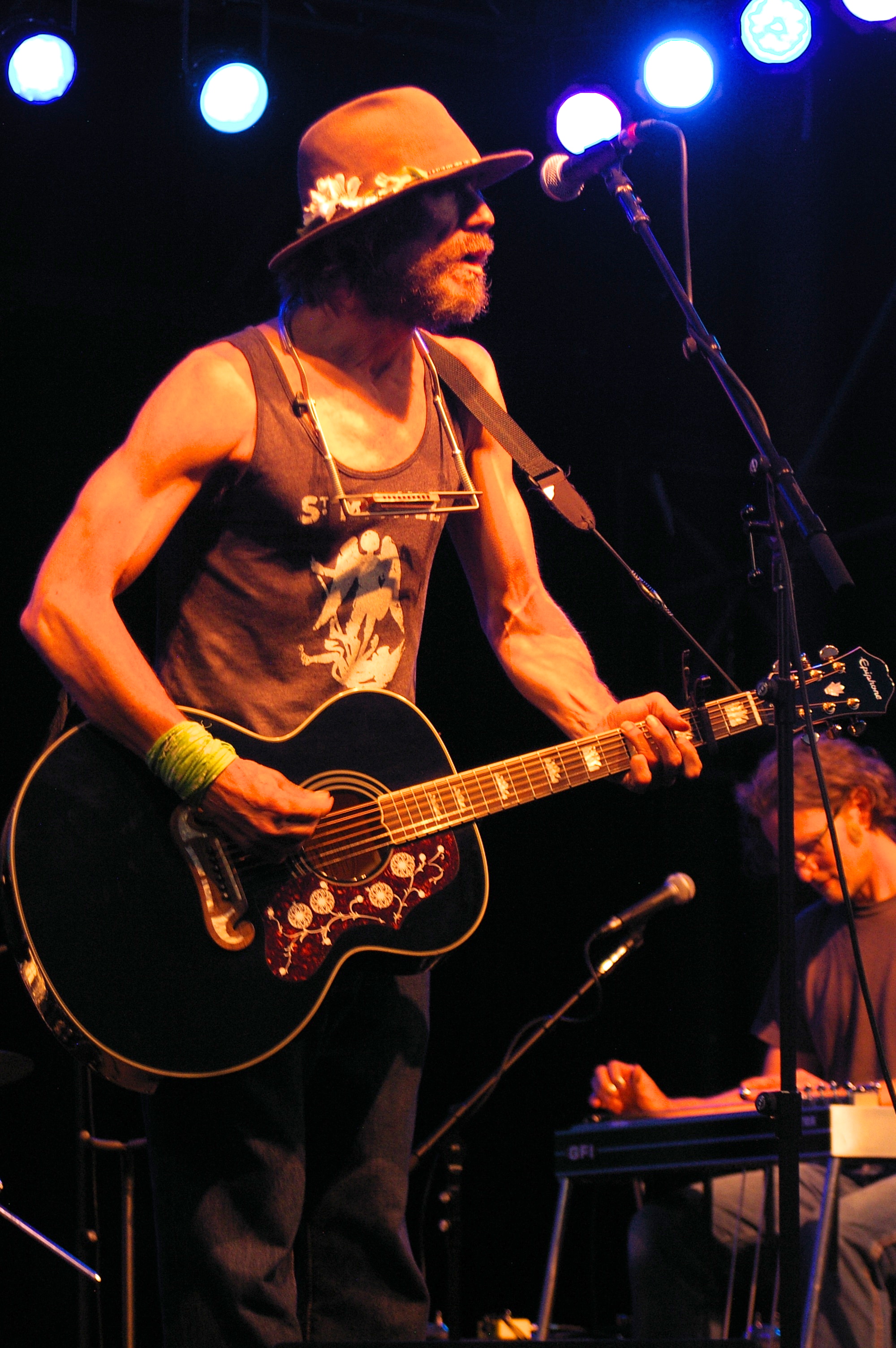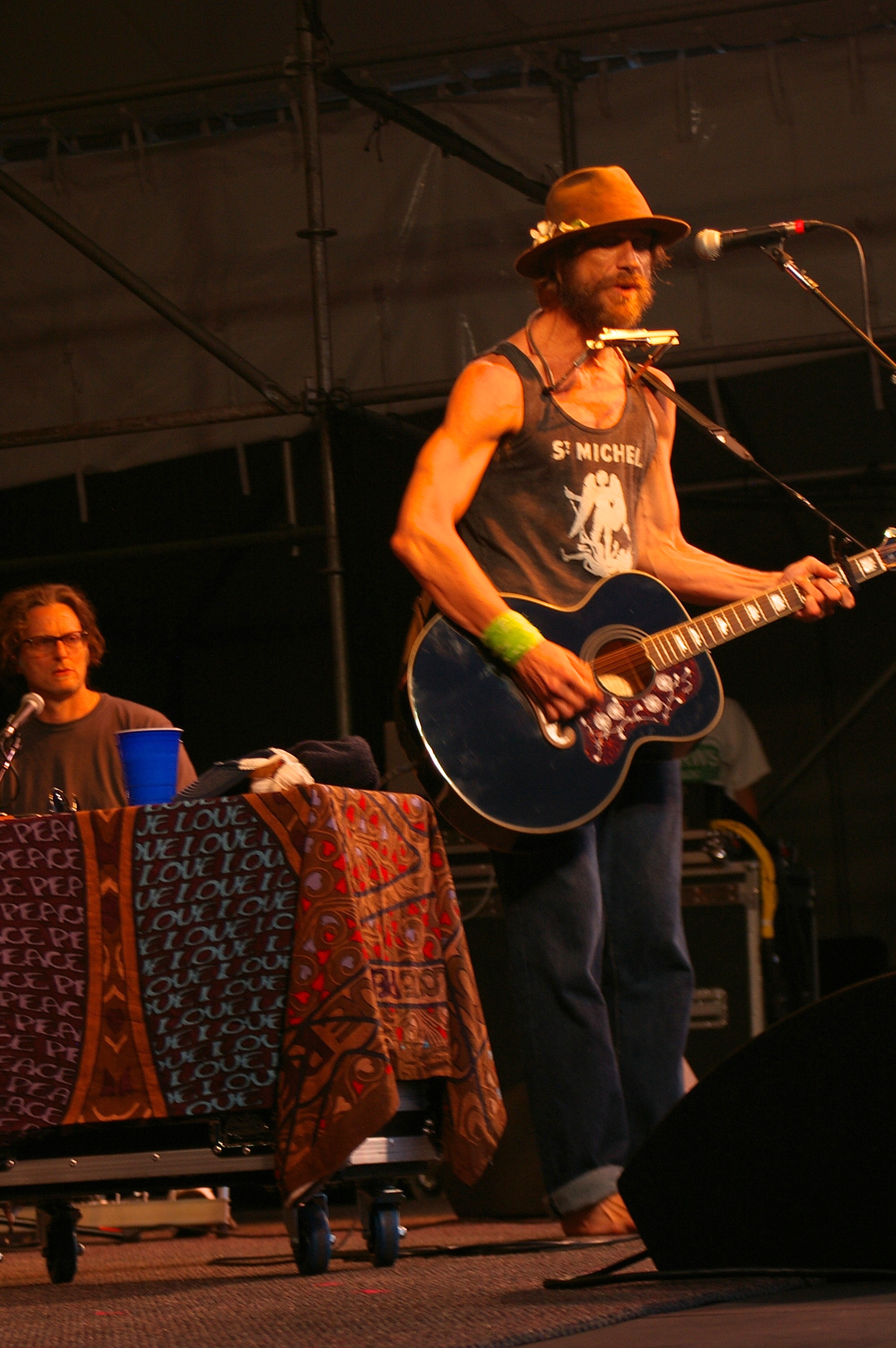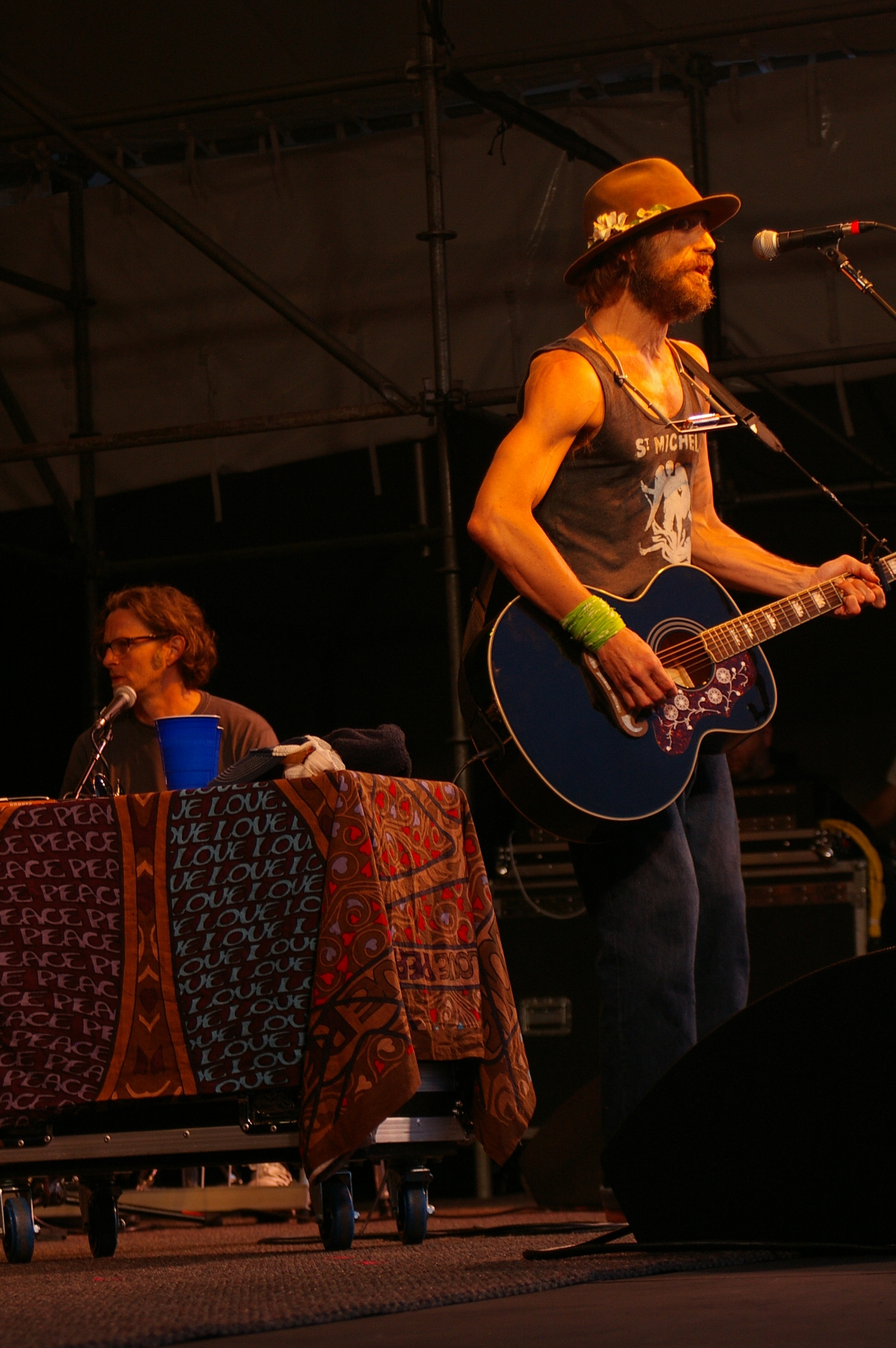 The fourth performer and headliner was Todd Snider himself. He came out looking like a young Bob Dylan, unshaven, wearing a fedora, dark glasses and barefoot. Complete with harmonica and acoustic guitar, I almost felt like I’d wandered into a time machine. Accompanied by a drummer and lap steel player, the immediate difference between him and Dylan is that he can sing. He began his set with a song about legendary Northwest Hijacker D.B. Cooper before warning the audience that being a folk singer, he’d be sharing his opinions with everyone, but not because he felt he was right or to try and change anyone’s mind, but because they rhyme. He then went on to say that the war on drugs is being funded by alcohol and tobacco and not because they care about people being on drugs, but just ensure we’re on the right drugs. He then made reference to Washington recently legalizing marijuana, which brought up raucous cheers from this almost all white audience ages thirty and up (aside from the children attending). He talked of the churches being more afraid of gays marrying than anything else and lit into a cover of Dylan’s The Times They Are A Changing.