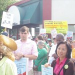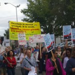 The various speakers emphasized the need to join together and fight against things like Florida’s Stand Your Ground law “where you can shoot someone for holding a bottle of iced tea and the size of your hoodie.” This statement brought several raucous cheers from the rapt crowd. The need to invest in education and health care was mentioned time and again. There was a booth there to free Marissa Alexander, the woman who was given a long prison term for simply firing a gun to ward off her abusive husband who was trespassing on her property. Ms. Alexander is black.