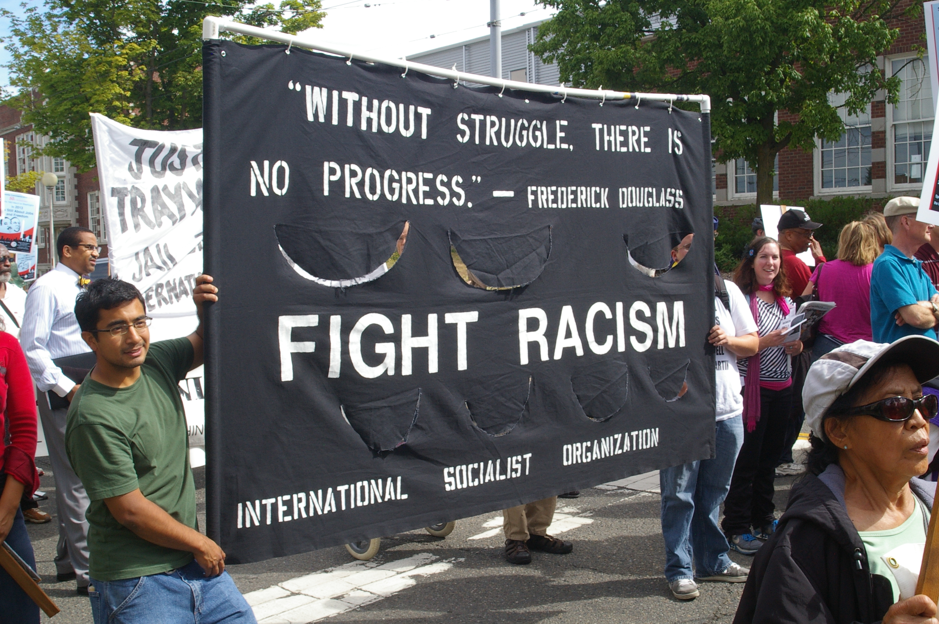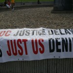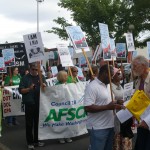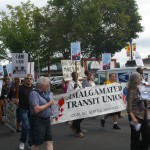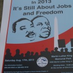 Due to bad traffic I arrived after the rally, but in time for the march about a mile and a half away to Martin Luther King Memorial Park. The crowd of 300 to 400 people chanted slogans such as, “Jobs and freedom. Working people need ‘em.” and “What do we want? Justice! When do we want it? Now!” During the march I noticed many came out on their front porches to watch, but no one joined us, proving my point that many still look upon democracy as a spectator sport and would rather not get involved.