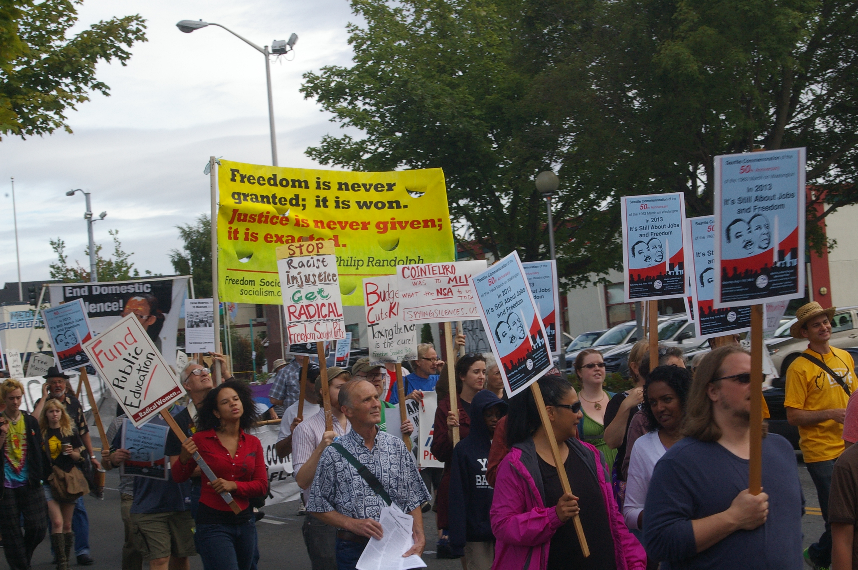 On Saturday August 17, I attended a march for civil rights in Central Seattle. This march was to commemorate the 50th anniversary of the famous March On Washington where MLK gave his famous I Have A Dream speech. The event was organized and funded by The Black Trade Unionists.