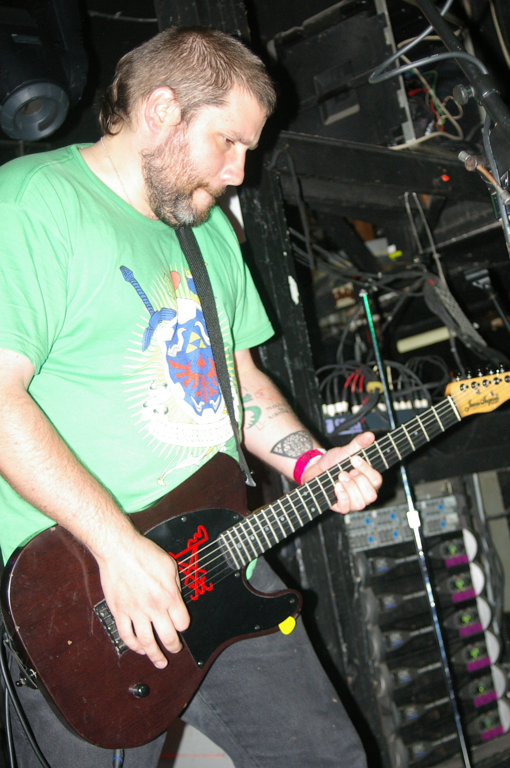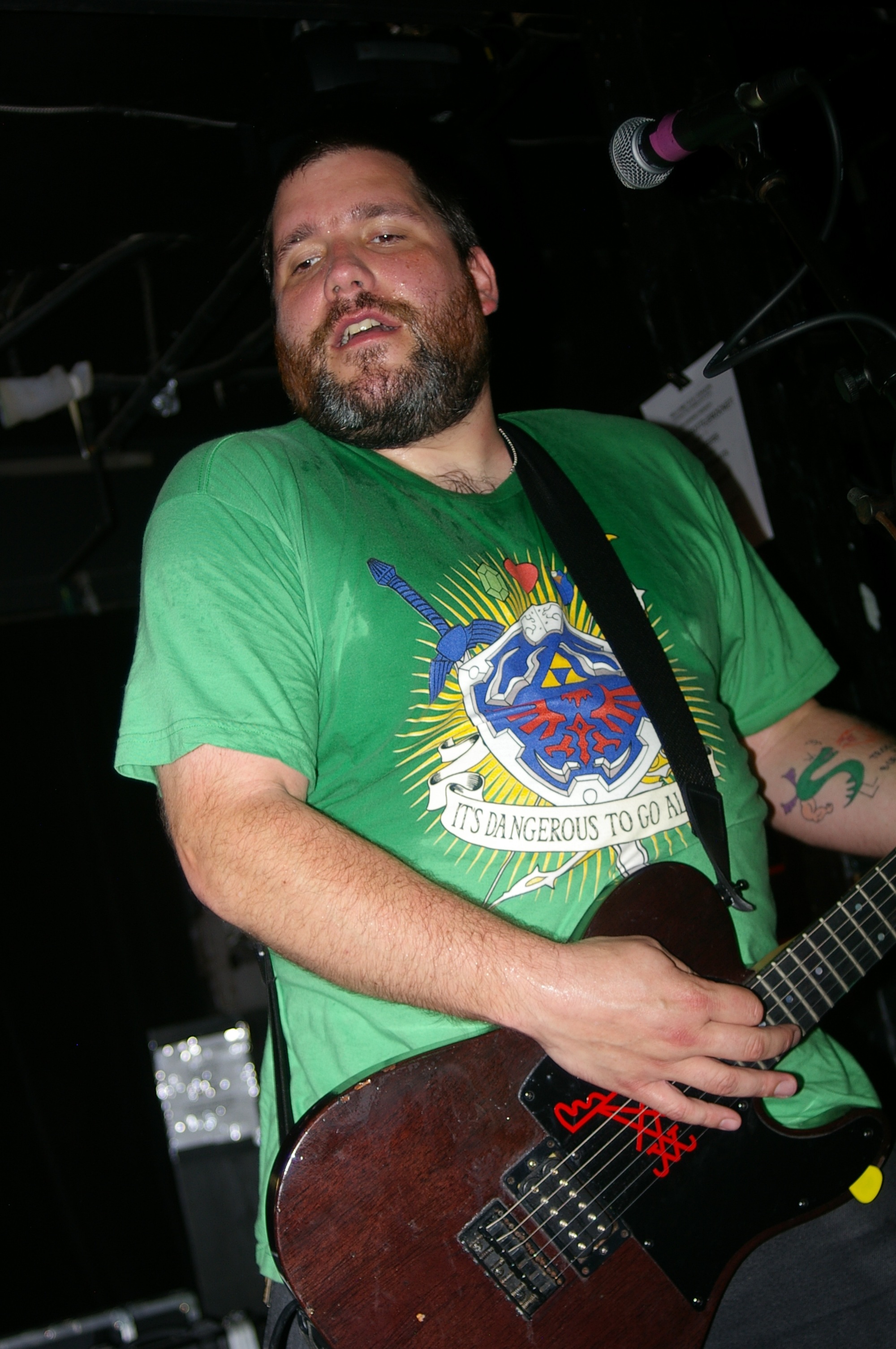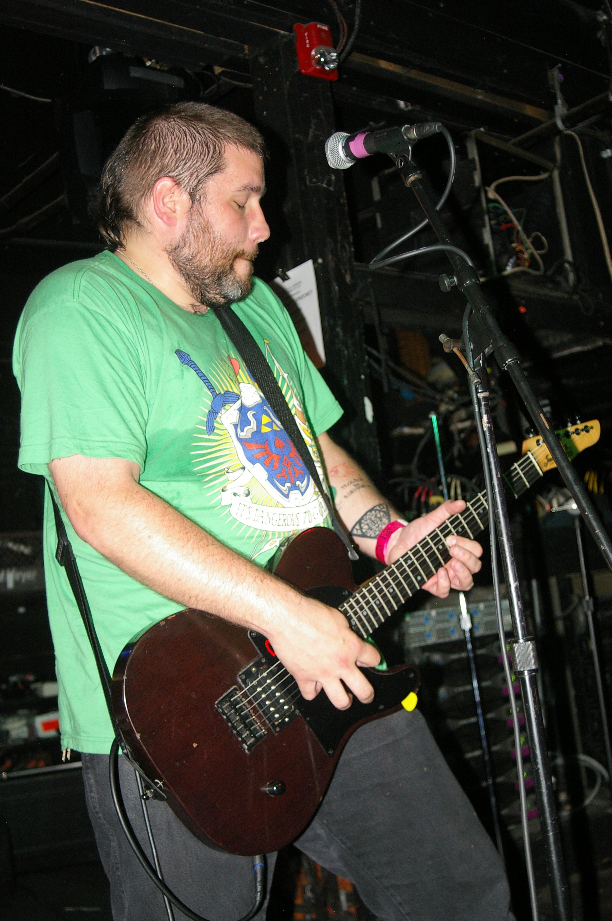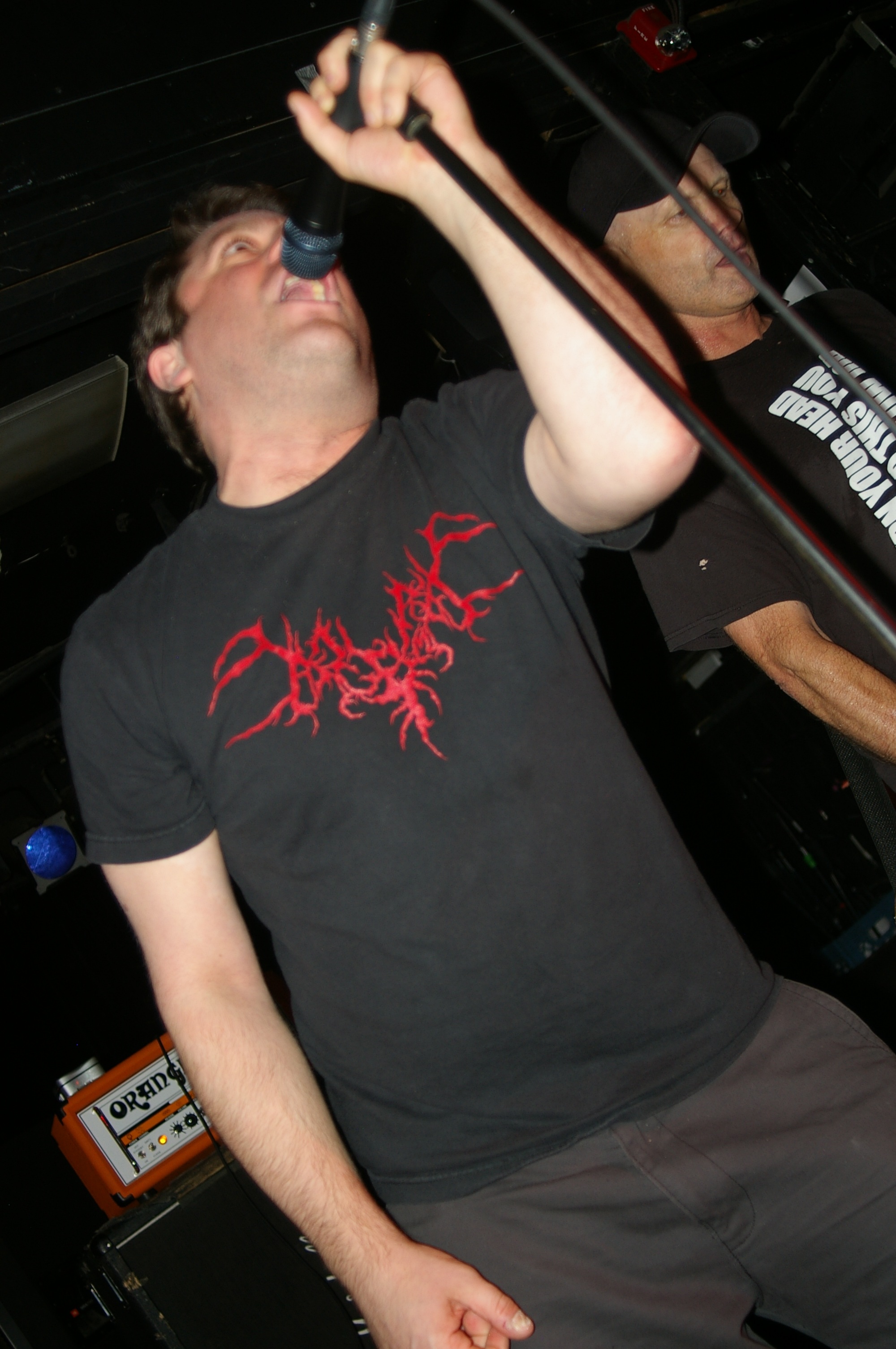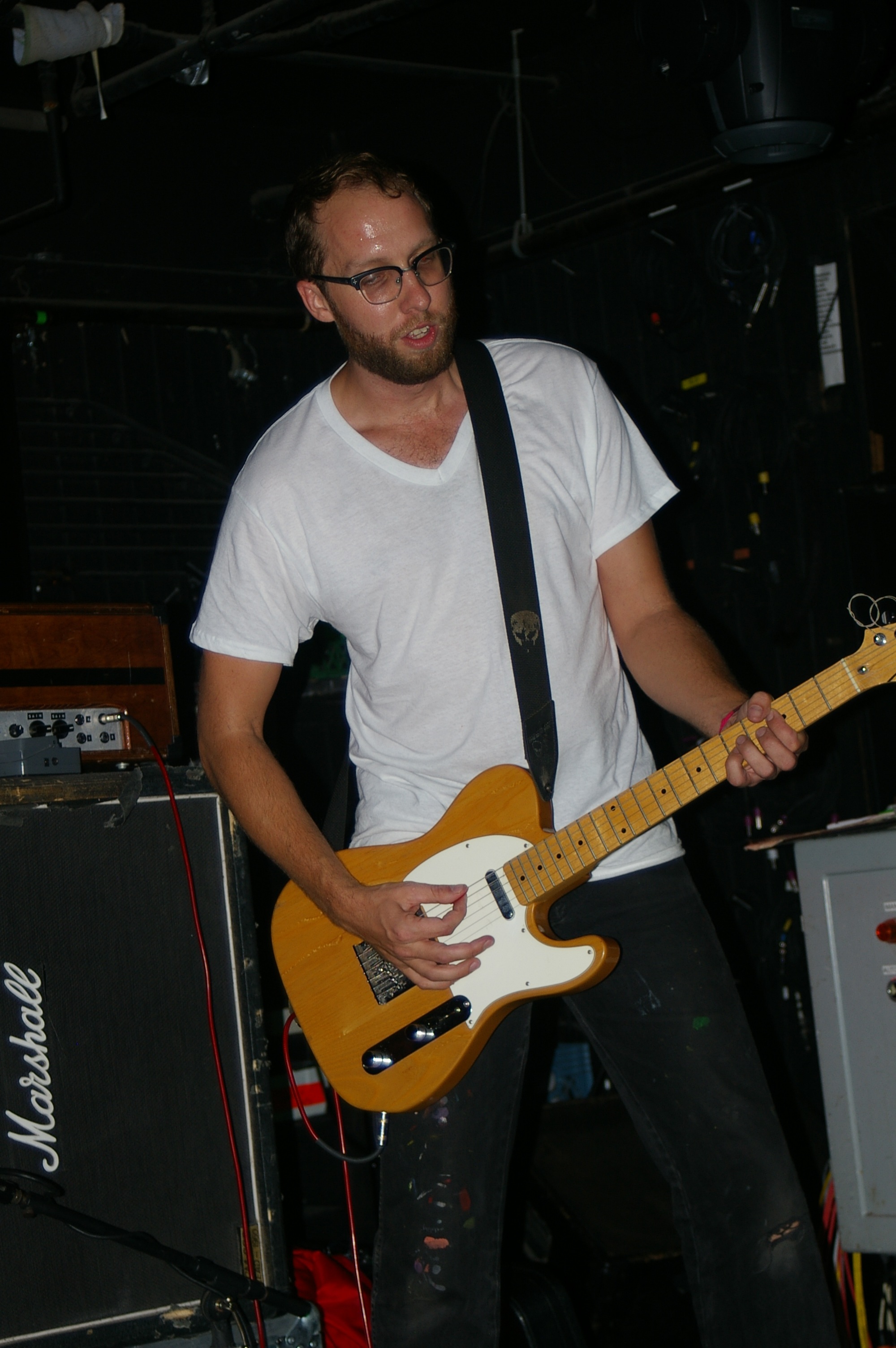 Before the band came out, some dude in a skull mask came on stage waving a red sign with a skull and crossbones on it. This lasted for about one minute (if that) before TBR his the stage with a rocket launch of raw, hard edged punk rock. This is a band that churns out songs that are melodic, yet raw and powerful. They play punk the way punk should sound. I was jostled about in all directions — backward, forward and jerked from side to side so many times I was surprised my internal organs weren’t rearranged. When it was all over, Skull Dude returned to the stage this time holding a red sign stating the words Thank You while the band left the stage. Teenage Bottle Rocket also consist of Kody Templeman – vocals and guitar and Miguel Chen on bass.