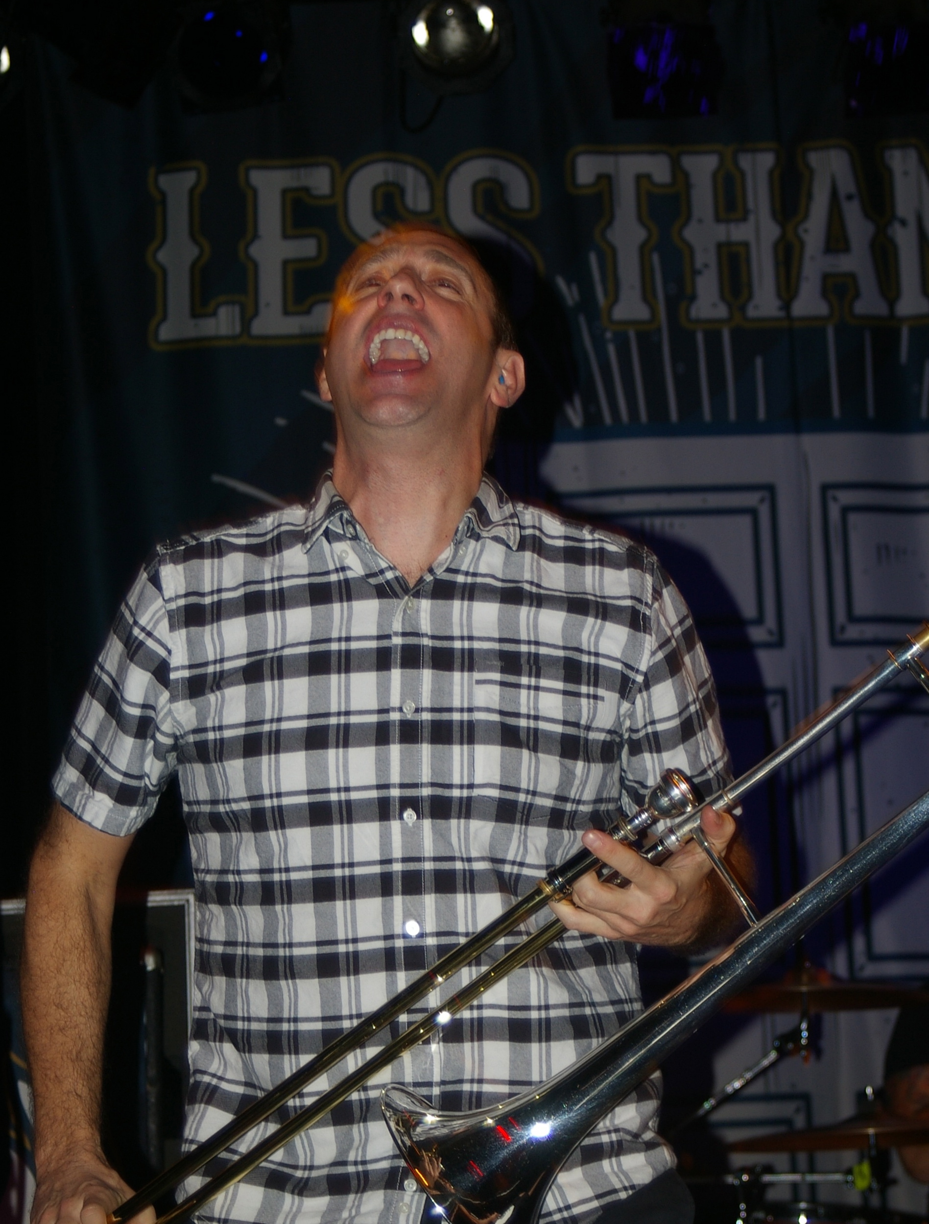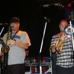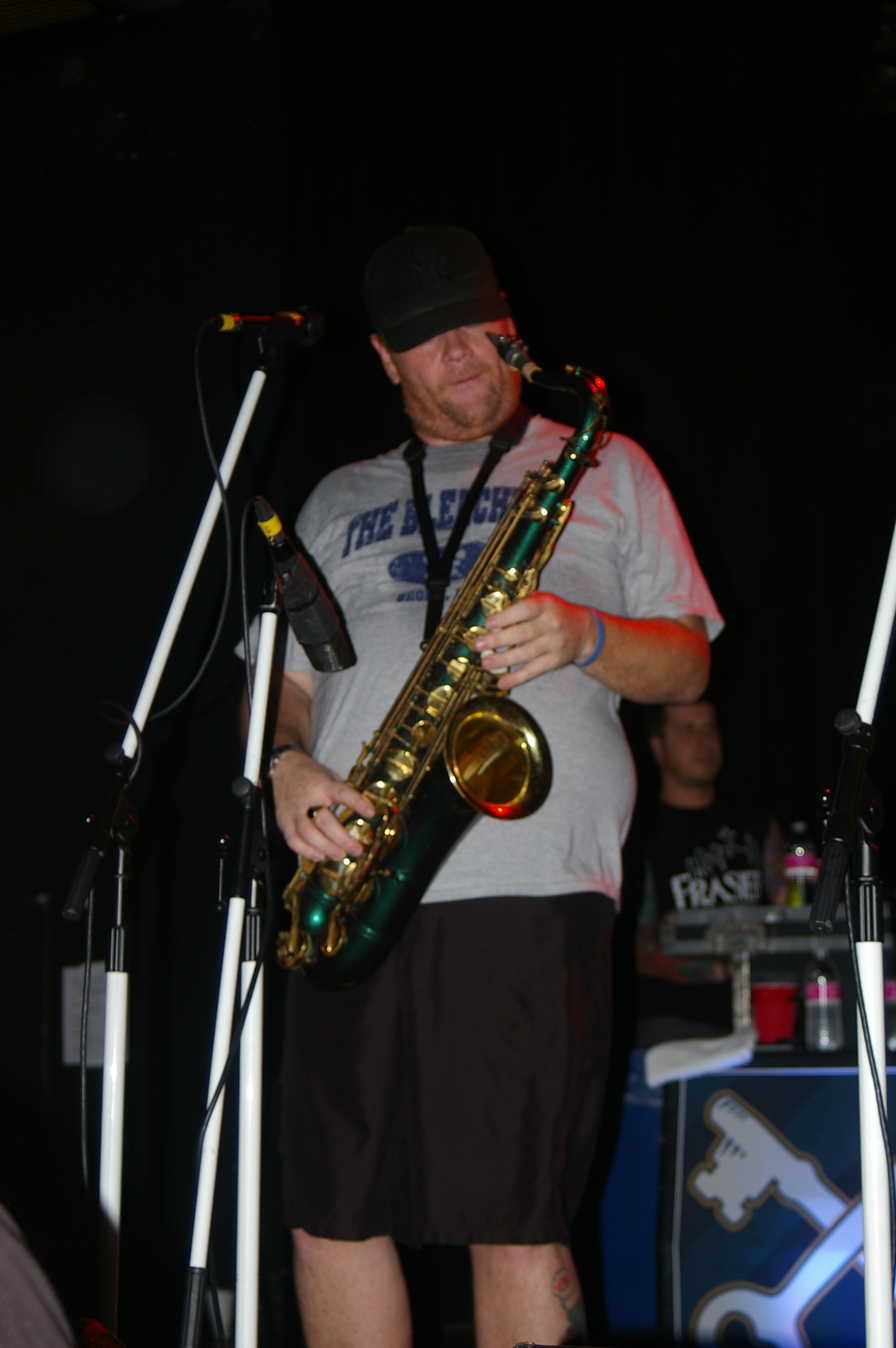All during the show trombonist Buddy Schaub leaped about the stage when he wasn’t harmonizing the horn section with Sax player Peter “JR” Wasilewski. Drummer Vinnie Fiorello slammed the skins so ferociously I could almost see shards of wood flying off his sticks.