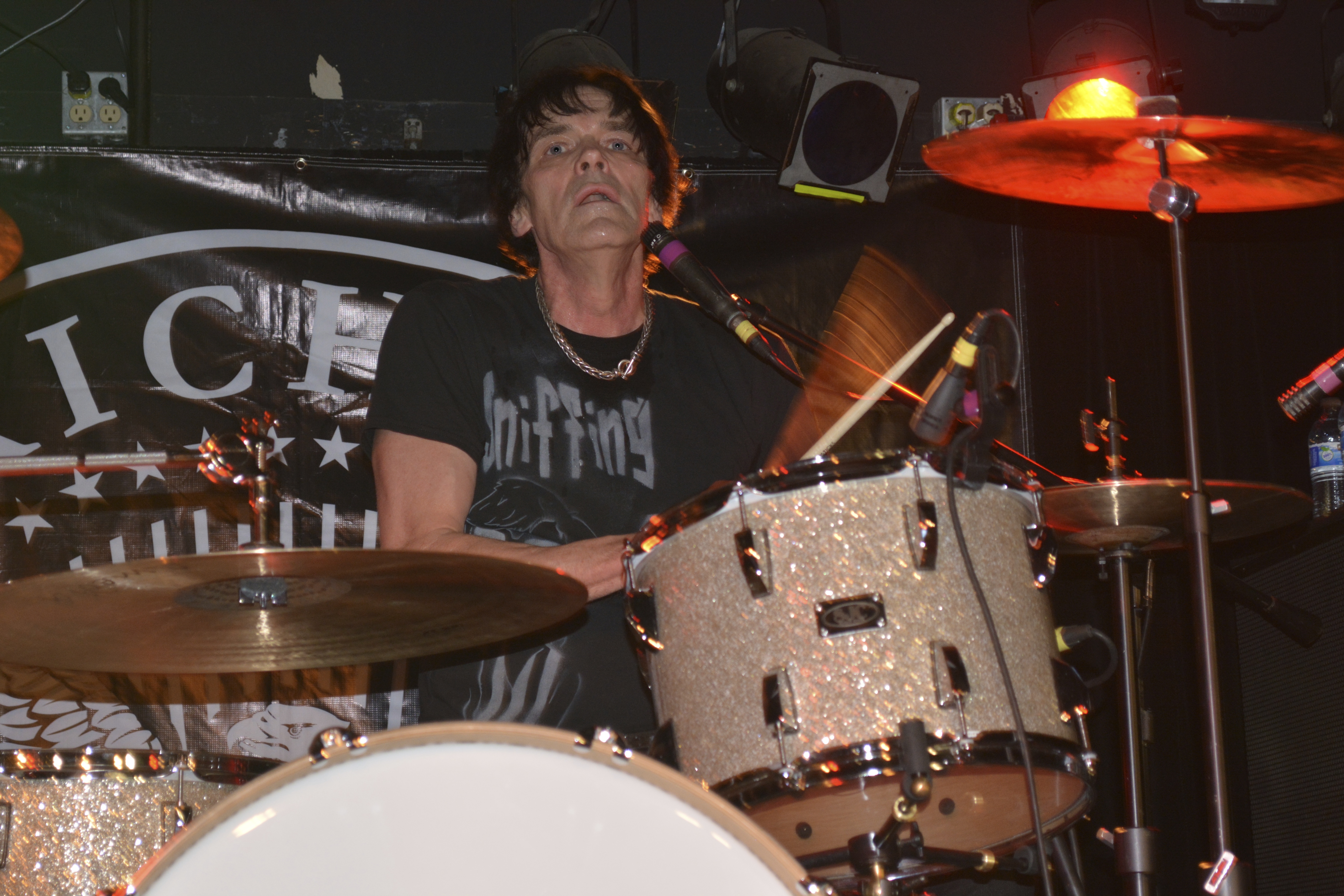 Richie began the set behind a large drum kit, but switched to being the front man with a mic while rhythm guitarist Ben Reagan (and probably the most sedate member of the group) took over on drum duties. Richie appeared comfortable with both roles as he strutted about growling and belting out song after song in true punk form. Though he was fabulous as the front man, singer, he was one with his drum kit (he sang lead on most the songs whether at the front of the stage or behind his drums).