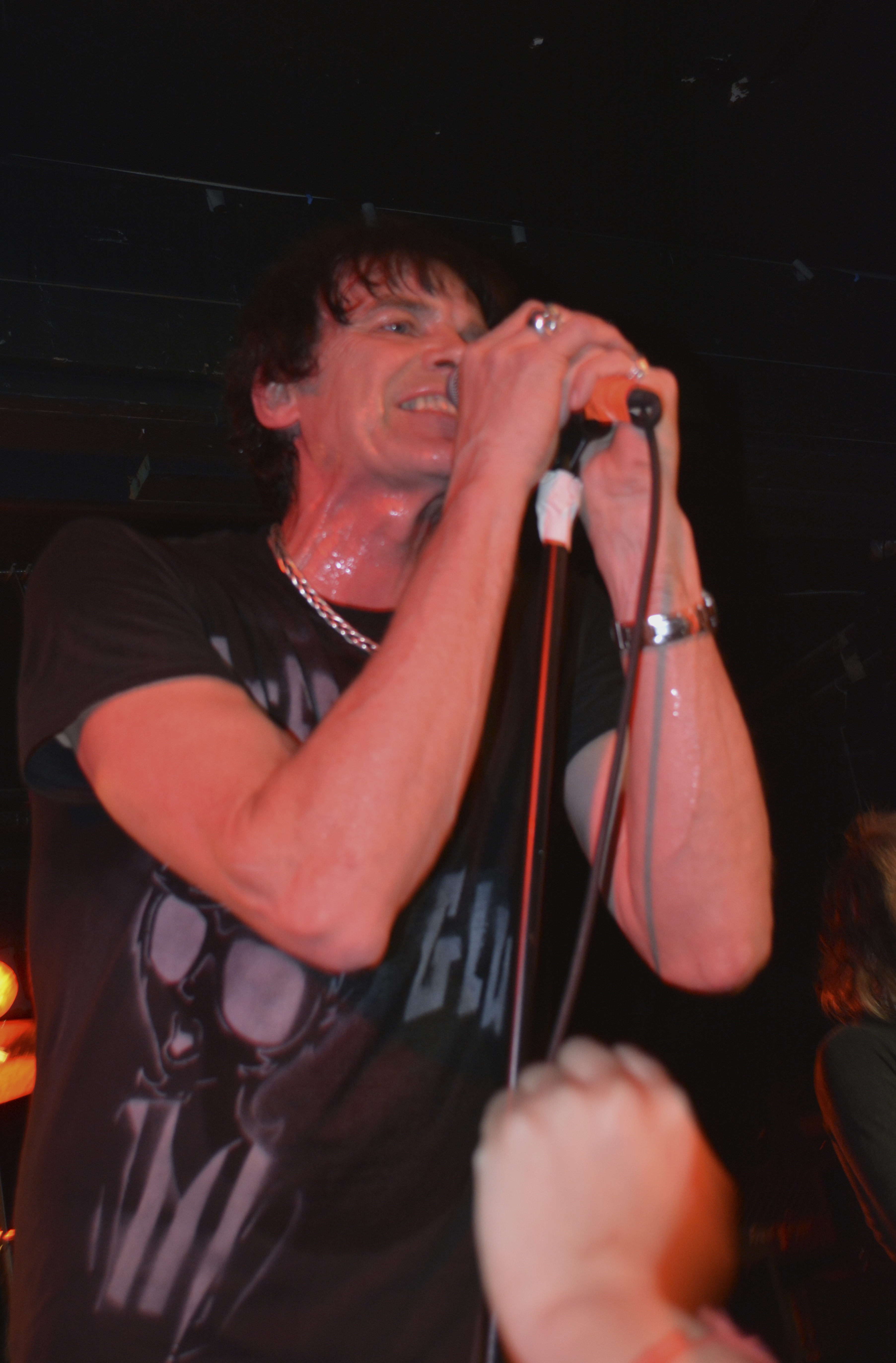 Bass player Clare Misstake banged wildly, sporting long hair shaved on the sides and wore tight leather short shorts, black stockings and calf length boots with large pink laces. It was difficult to decipher if she upstaged Alex Kane. This show was wild. Several Ramones’ songs were performed (with Alex taking lead vocals on many) including Wart Hog, Around the World, I Just Want To Have Something To Do, Blitzkrieg Bop (during which, Richie stuck the mic into the crowd, letting audience members shout along to the chorus), and, during the encore, Cretin Hop.