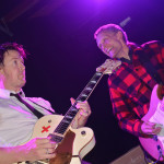 The straight up rock and roll sound continued when Mike Peters took over lead vocals on another Alarm song, Sold Me Down the River, but switched to rockabilly again when Slim Jim sang a couple Stray Cats songs (Rock This Town and Runaway Boys). Later on he performed Rumble In Brighton Tonight, but changed the word Brighton to Seattle, while he slammed away on his stand up drum kit.