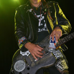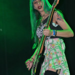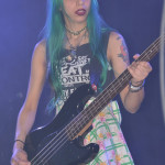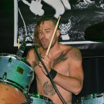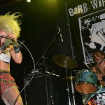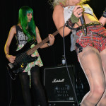 Barb Wire DollsOpening the evening was a band from Greece calling themselves Barb Wire Dolls. And these guys can rock! The foursome consists of two dudes and two dudettes (Isis Queen – vocals, Pyn Doll – guitar, JayJay Doll – bass, Krash Doll – drums). Barb Wire Dolls are what hard core punk should sound like and look like. They are pure, raw, in your face energy. Lead vocalist Isis Queen is all over the stage, gyrating, twisting and whipping her long blonde tresses. Drummer Krash Doll slams the skins like a possessed wild animal and was drenched in sweat almost from the onset. Guitarist Pyn Doll looked every bit the hardcore punk — a skin head with a leather jacket, who at one point used a can of beer as a guitar slide. Only bass player Jay Jay Doll looked sweet and innocent and barely moved a muscle. The contrast was what made the look of this band complete. And boy could they ROCK! Their live performance was nothing short of amazing. Hard core punk fans should surely check them out next time they come through Seattle. They are a force to be reckoned with and the perfect appetizer for this wild party night.