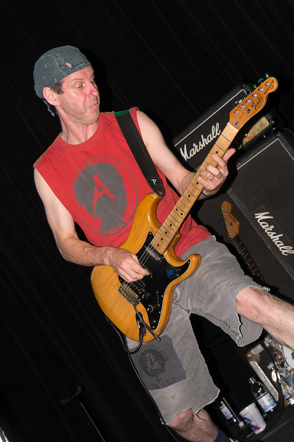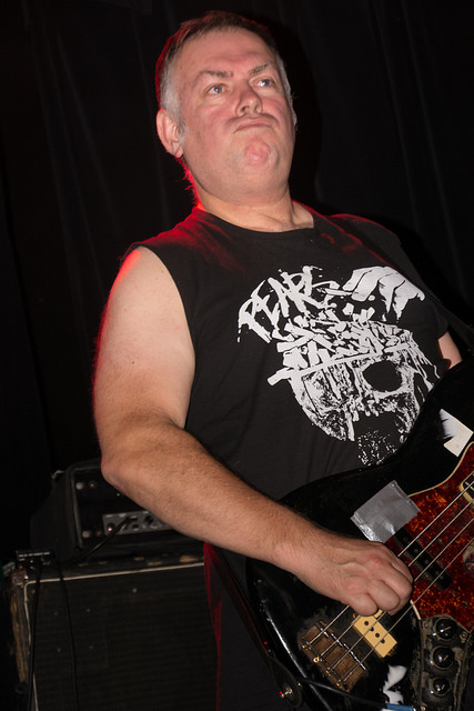 By the time the evening was over I was sure I’d need a spinal alignment from being crushed against the stage so many times. My only complaint would be that they had an invisible drummer. Either he was short or the stool set too low, but he was completely hidden by the kit. When I go see a band I like seeing the whole band. But this is a minor complaint. This show was pure oi punk and I loved every minute of it. Besides the aforementioned Dick Lucas, Subhumans are comprised of Bruce Treasure on guitar, Phil on bass and (the invisible) Trotsky on drums.