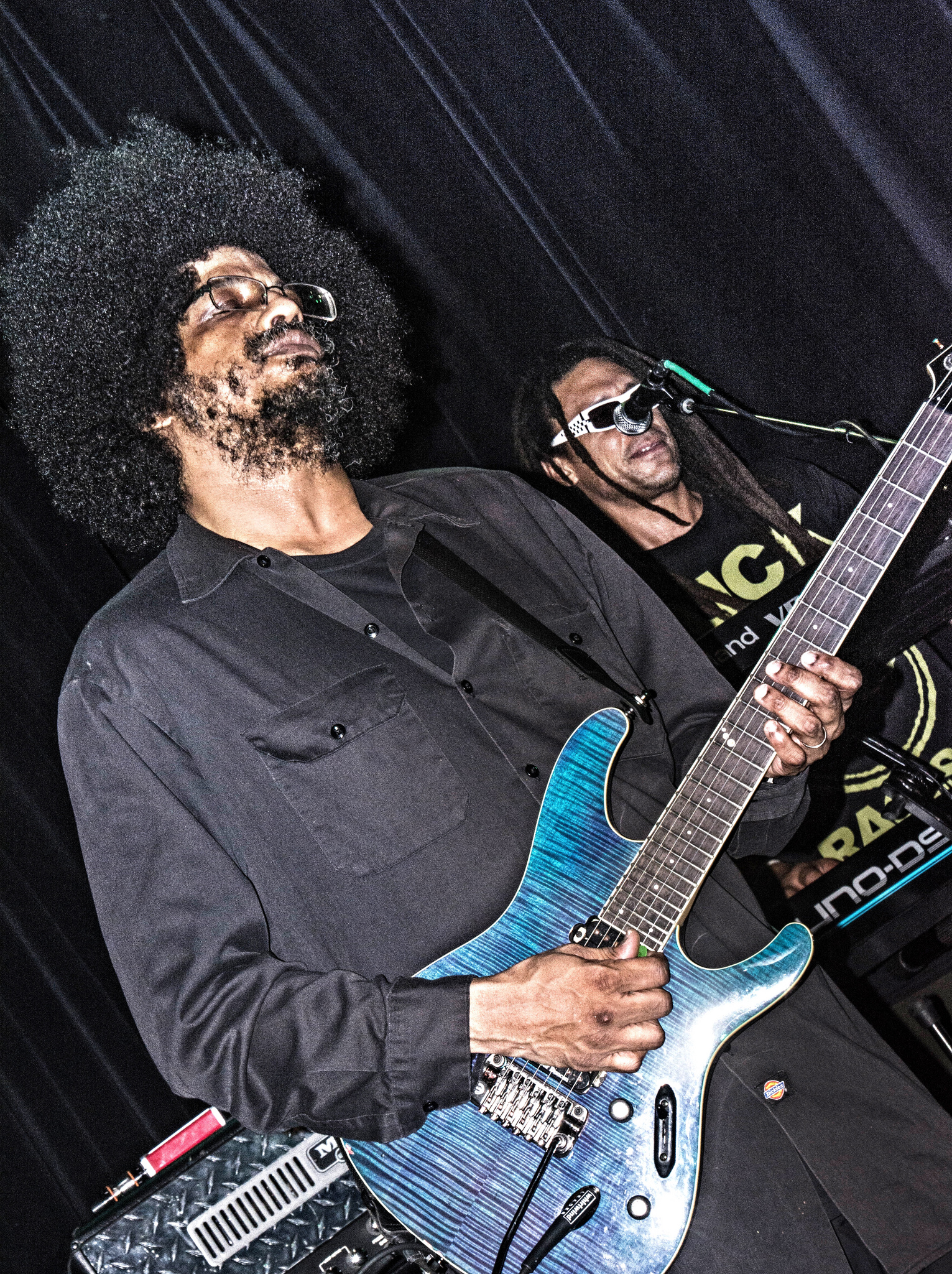 Guitarist Rocky George sported a four-inch high afro haircut and tortured the strings of his guitar, making them scream and wail throughout the entire show. Keyboardist Paul Hampton whipped his long locks about and wore dark glasses in white plastic frames.