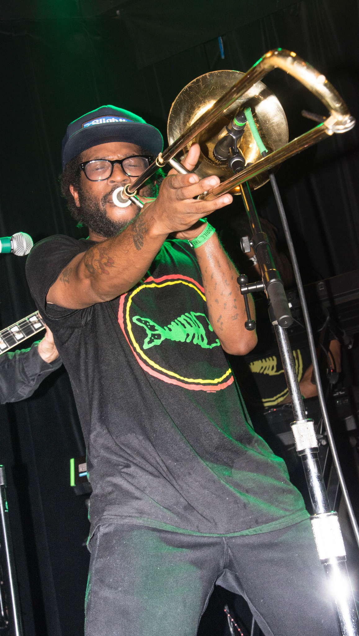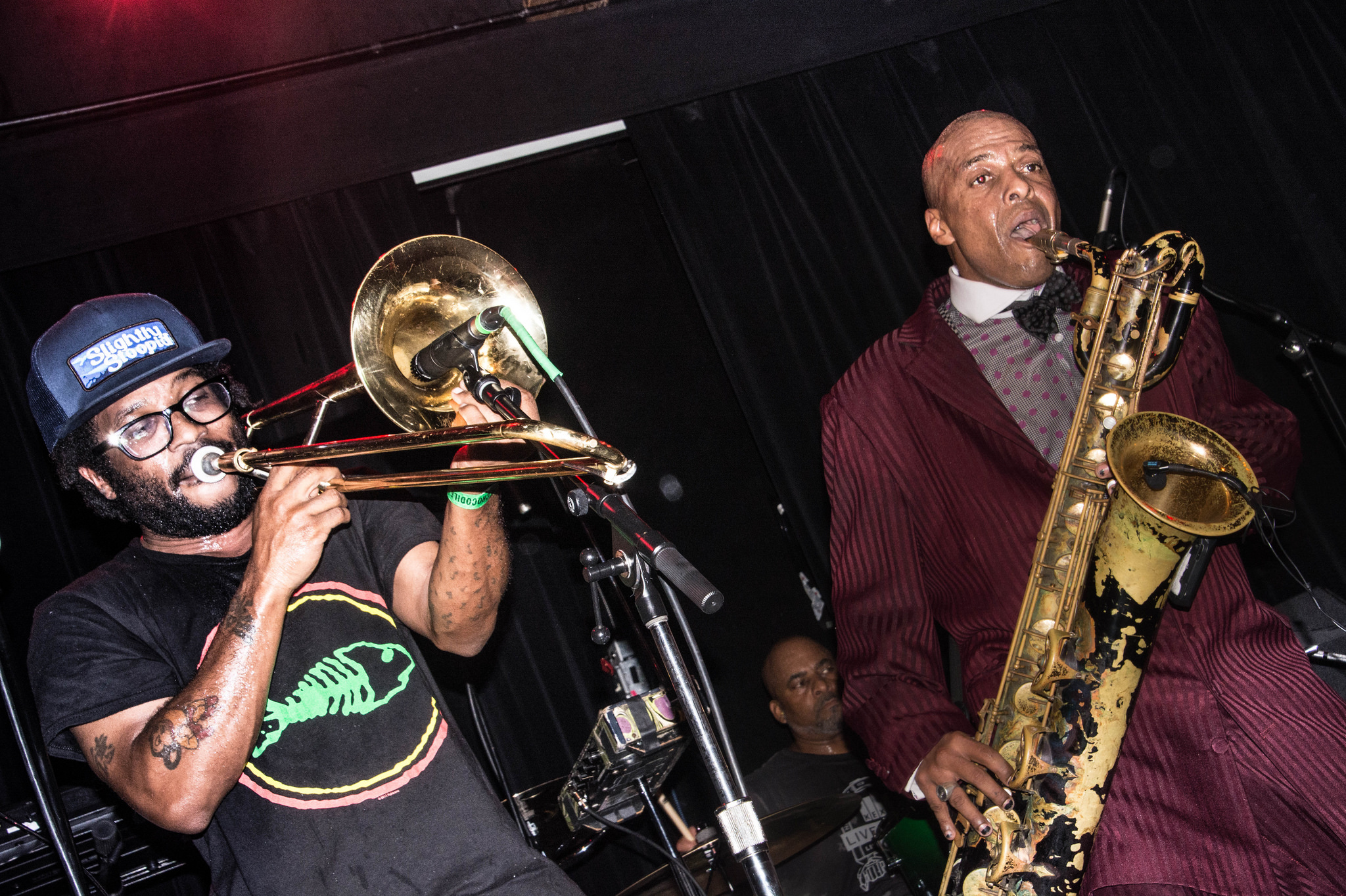 The aforementioned members weren’t the only lively ones. Trombonist Jay Armant strutted about the stage while blowing his horn before dashing back to his mic to perform harmonies.