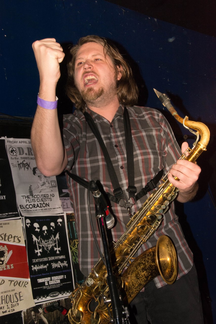 Guitarist Aron sang lead on occasion including a great cover of the Specials Gangster. At one point he jumped off the stage and mingled with the audience, never missing a lick. Lots of covers from this band including songs you never thought remotely related to ska like Elvis Costello’s Pump It Up. Yet these guys made it all work. I can’t wait to see them again. The rest of the Replicators are Scott on drums, Chris on cornet and Kyle on sax.