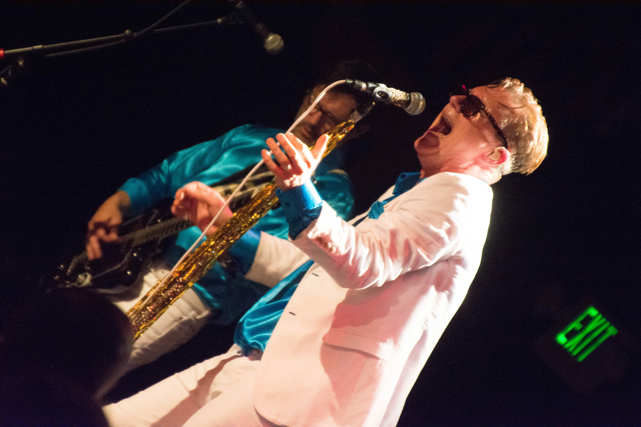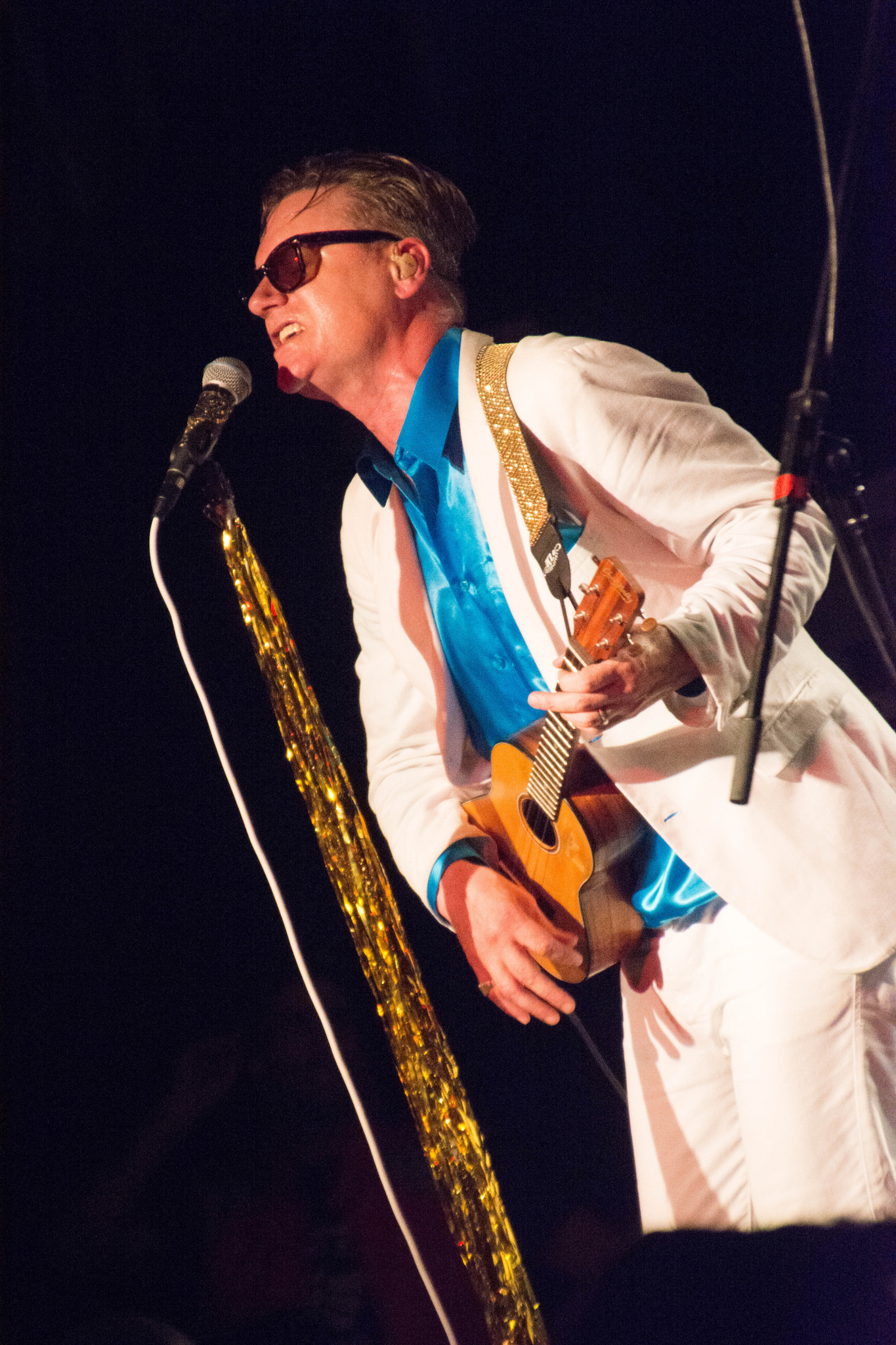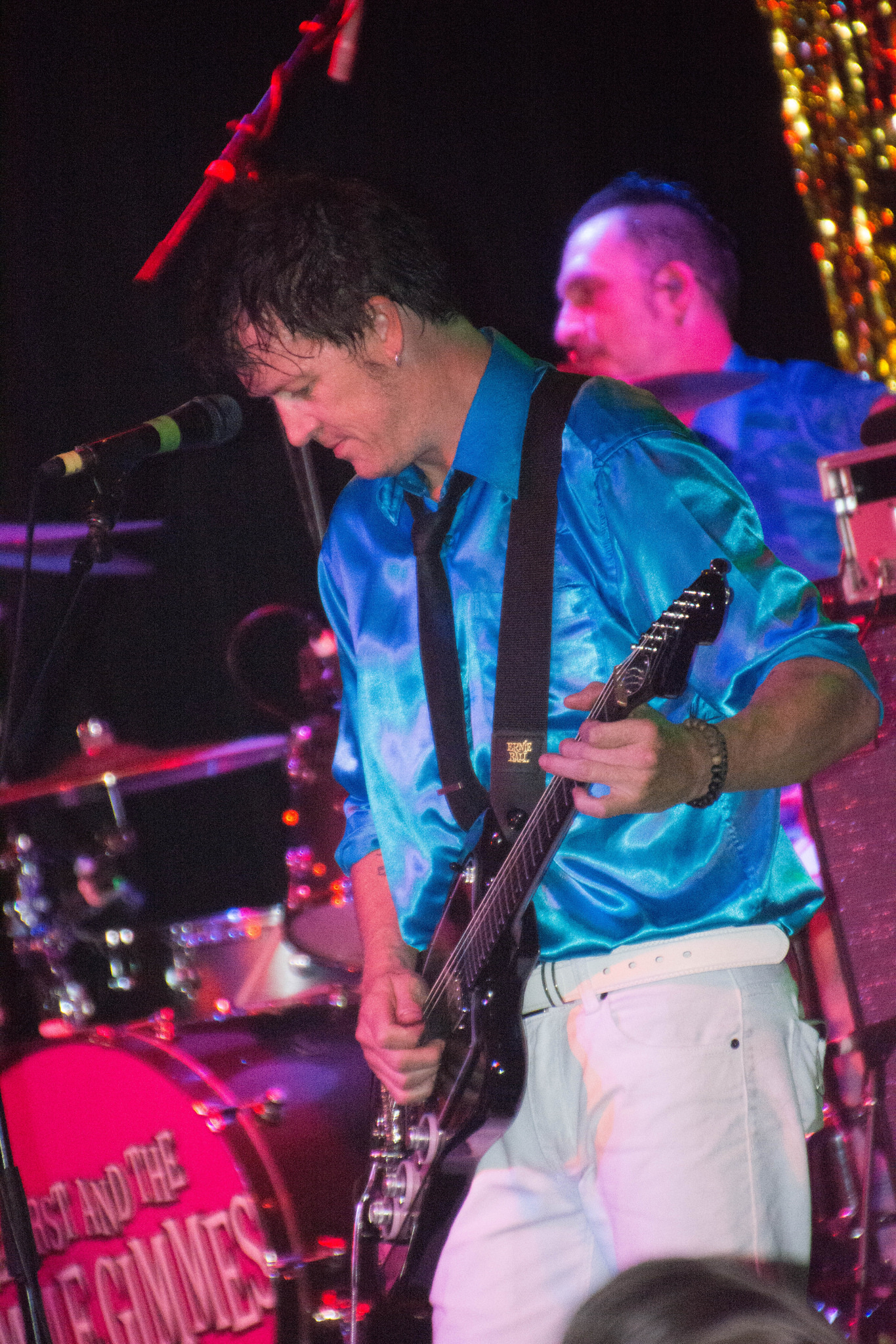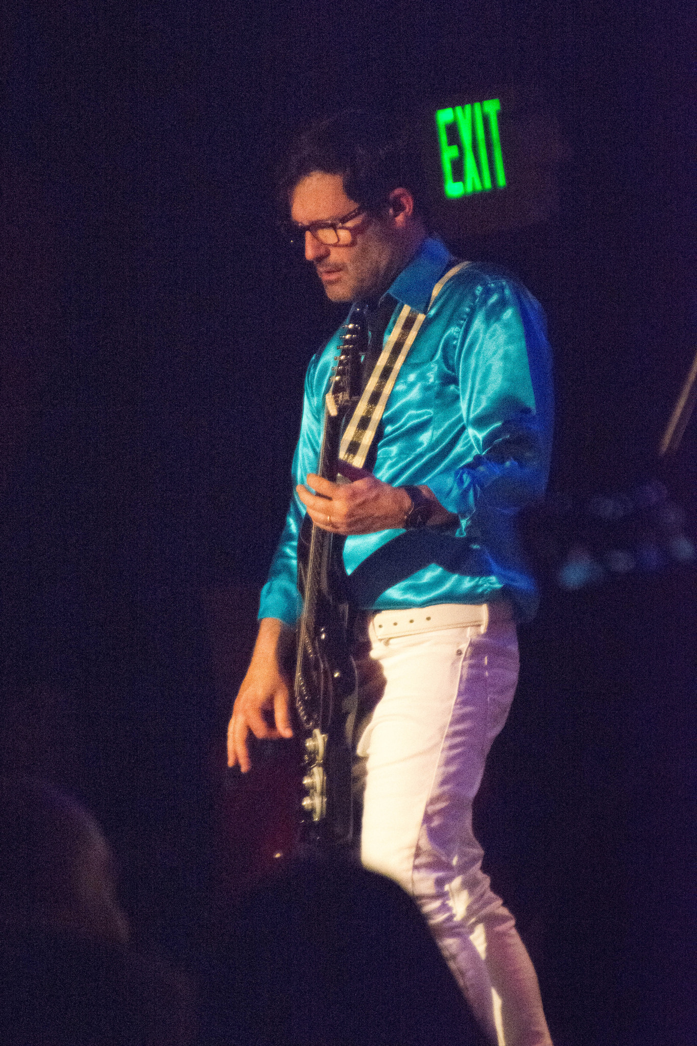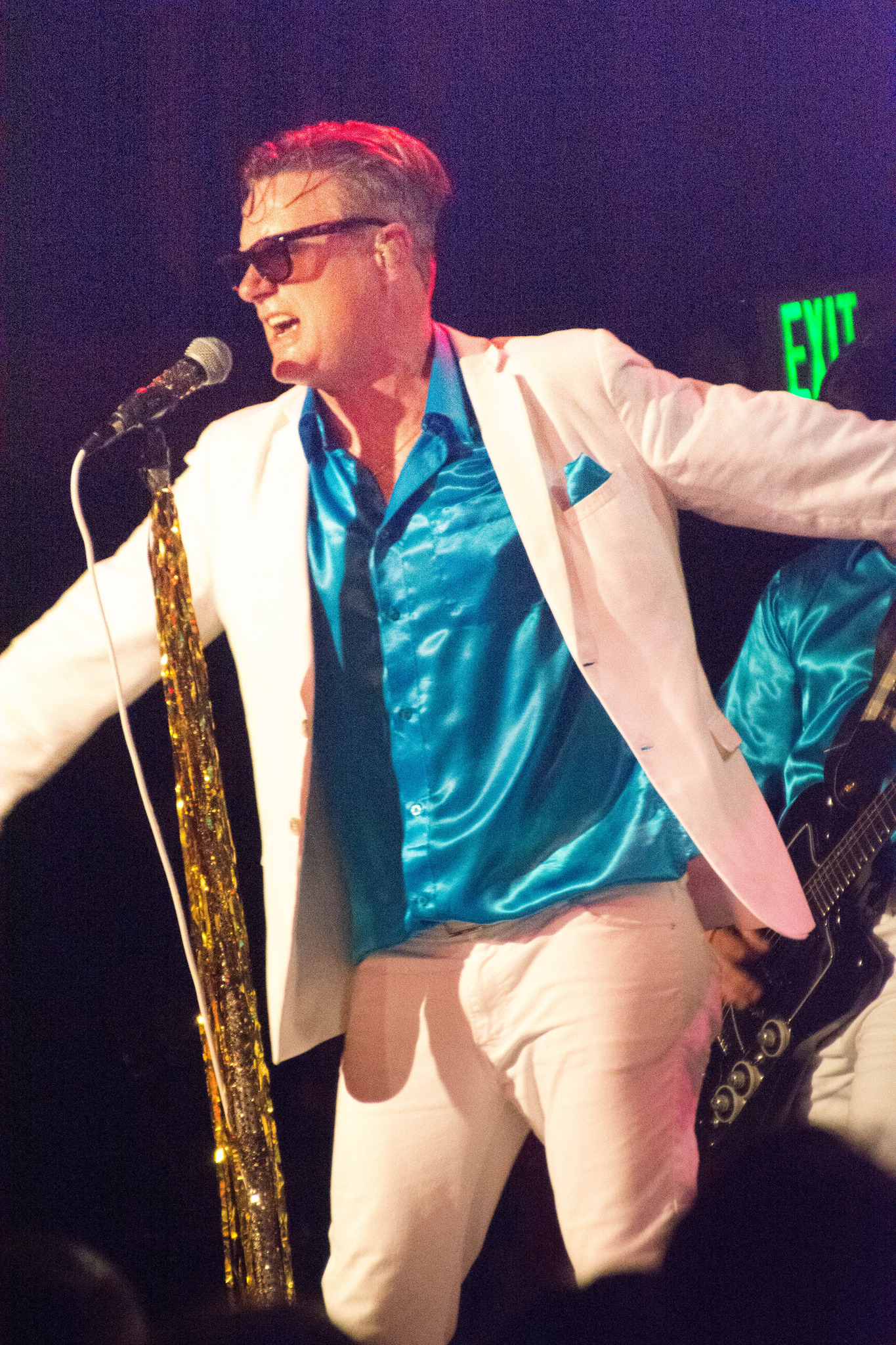 The band came on stage wearing matching outfits consisting of white denims and turquoise satin shirts. Spike wore a white blazer over his shirt. Spike was also quite the showman. With his tongue planted firmly in his cheek he introduced almost every song by saying, this one’s a cover. They opened with “Summertime” (and the livin’ is easy) and followed that up with “Leavin’ On A Jet Plane,” all done in high speed punk. Other songs included “Who Put the Bomp” (in the Bomp, Bomp Bomp). As Spike explained, “We’re a band that does covers. No, scratch that. We’re THE band that does covers. He also kept changing the band’s name. One time he introduced them as Benny Hurstad and the Jammie Jammies, covering songs and making them better (can’t disagree there).