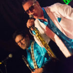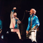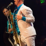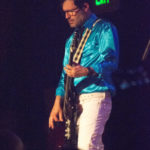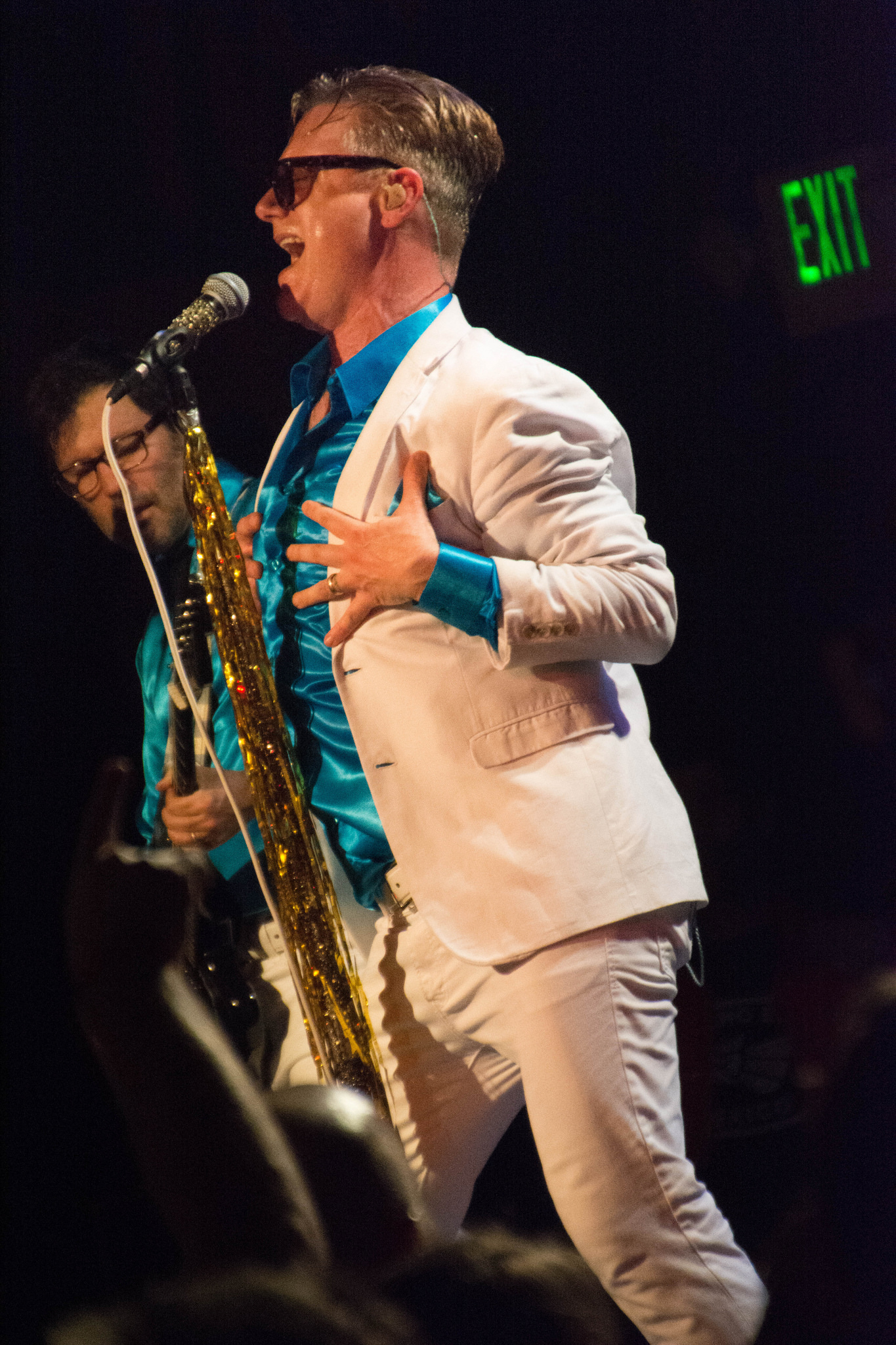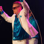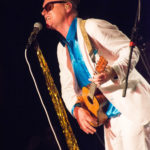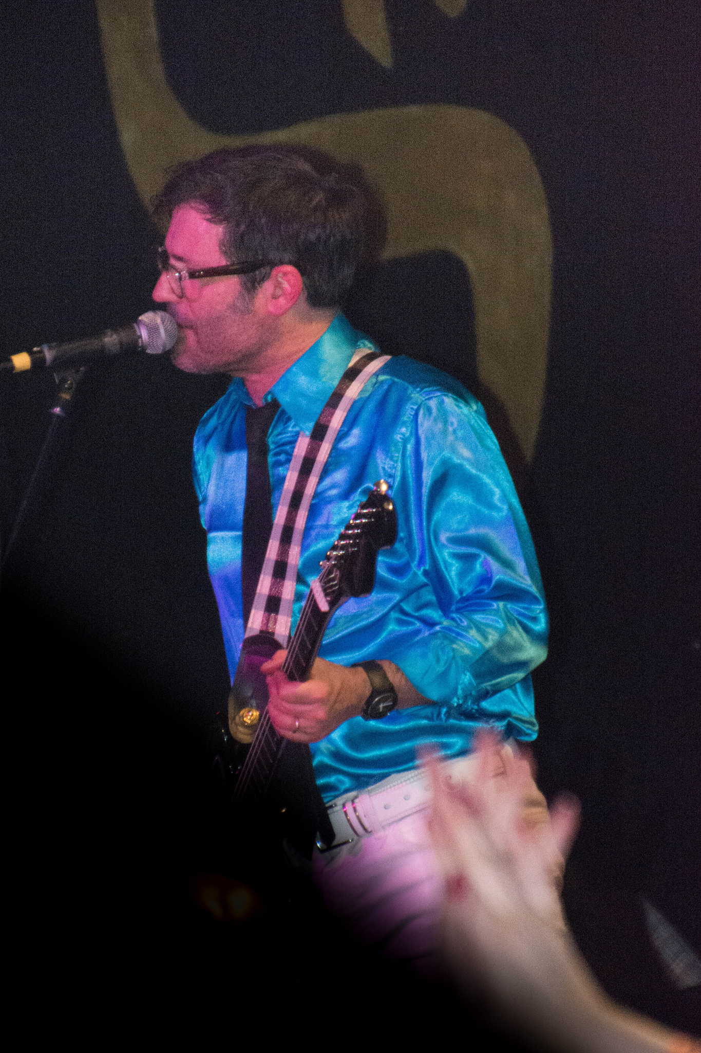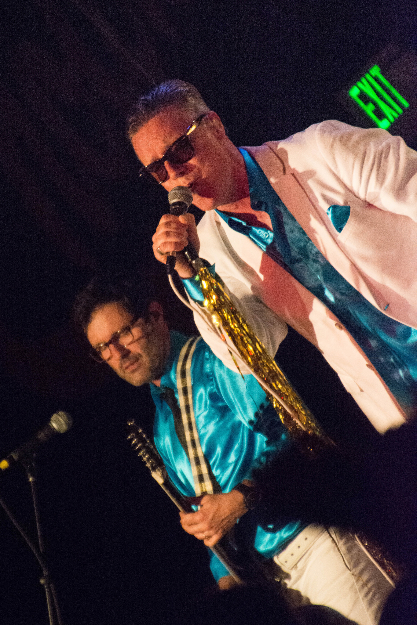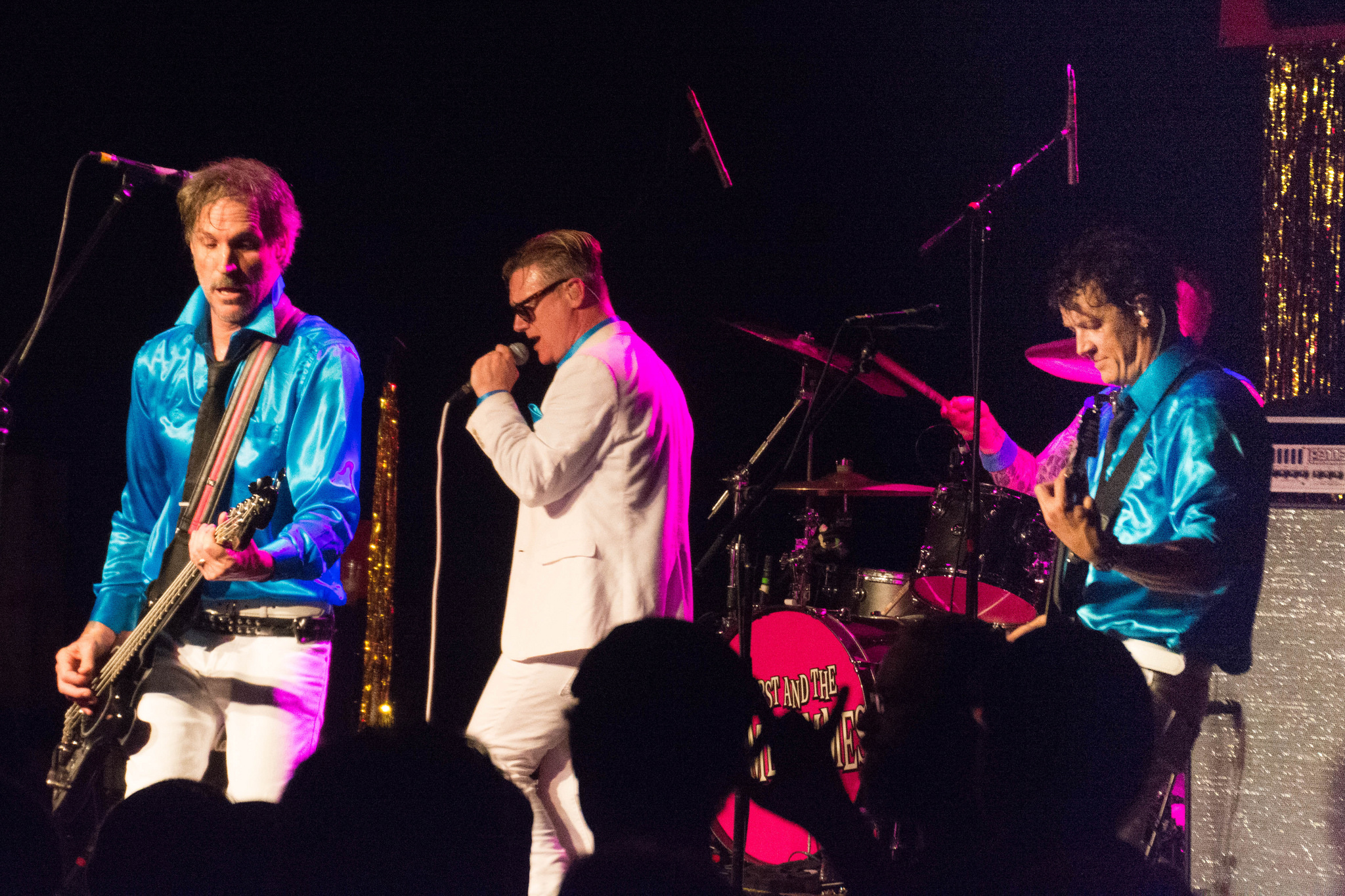 The band came on stage wearing matching outfits consisting of white denims and turquoise satin shirts. Spike wore a white blazer over his shirt. Spike was also quite the showman. With his tongue planted firmly in his cheek he introduced almost every song by saying, this one’s a cover. They opened with “Summertime” (and the livin’ is easy) and followed that up with “Leavin’ On A Jet Plane,” all done in high speed punk. Other songs included “Who Put the Bomp” (in the Bomp, Bomp Bomp). As Spike explained, “We’re a band that does covers. No, scratch that. We’re THE band that does covers. He also kept changing the band’s name. One time he introduced them as Benny Hurstad and the Jammie Jammies, covering songs and making them better (can’t disagree there).