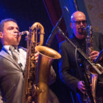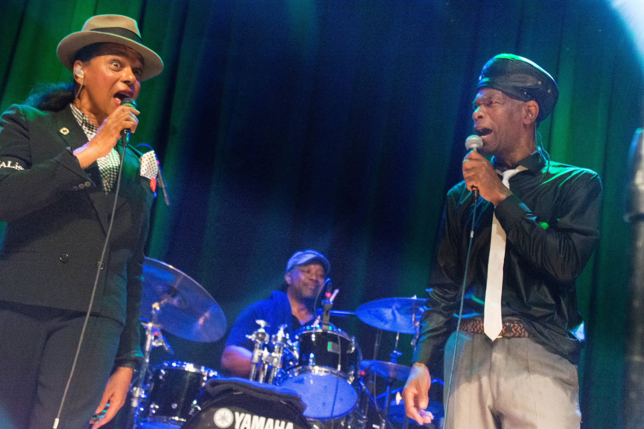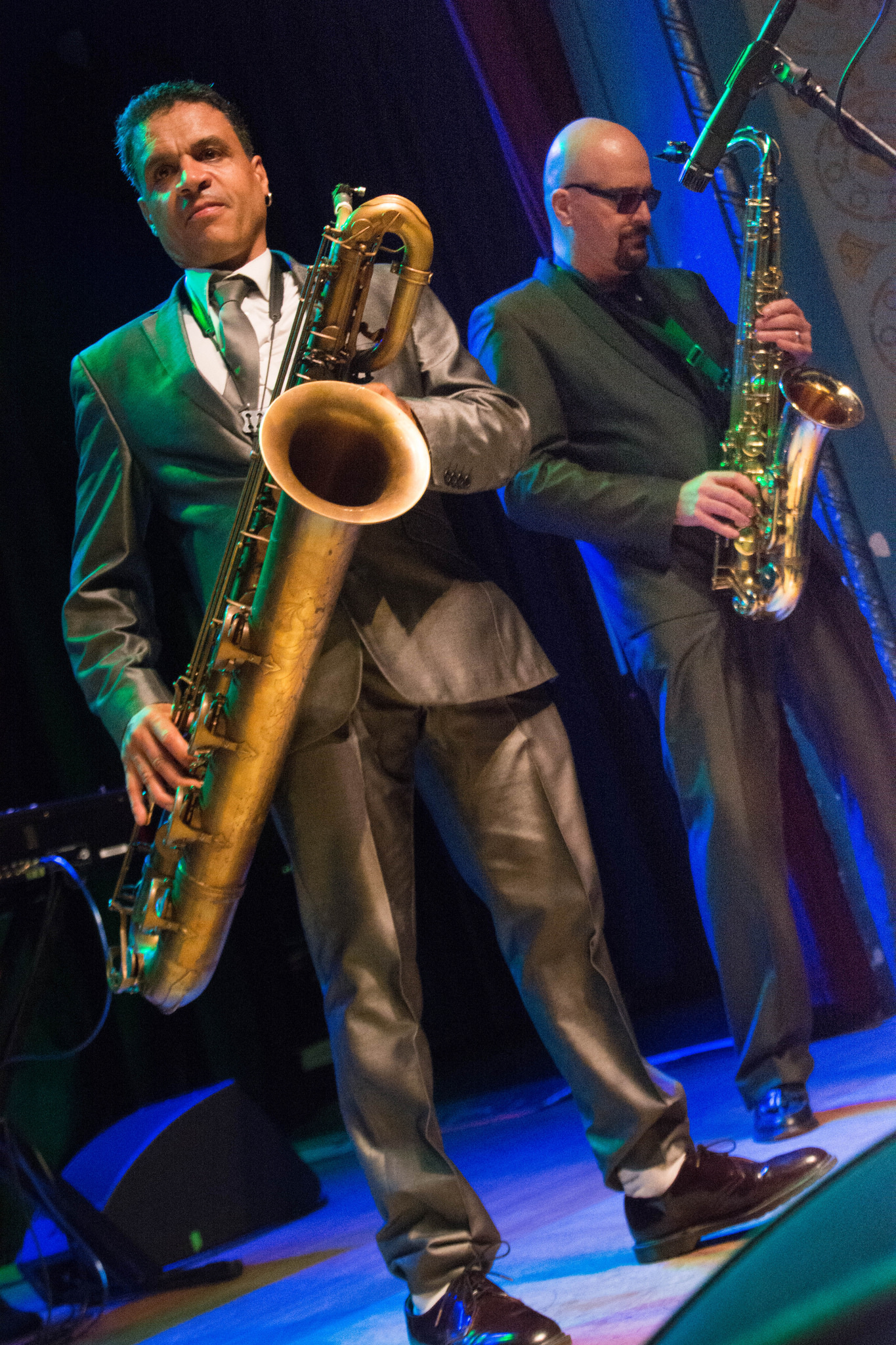 The horn section, Neil Pyzer-Skeete, tenor sax and Orlando LaRose, baritone sax were no slouches in putting on their own dance moves to keep things lively and neither was keyboard player Lee Horsley who bounced about without ever missing a note with his lightning speed fingers.