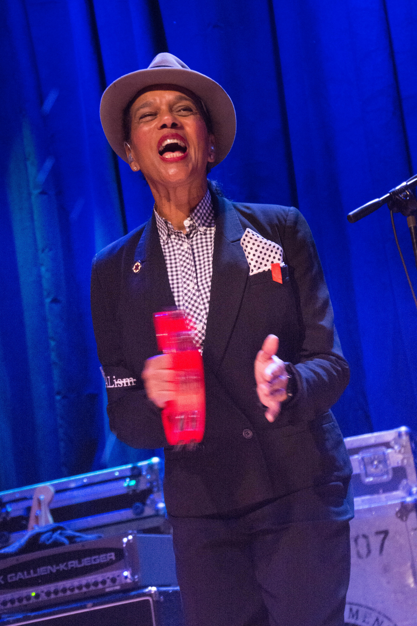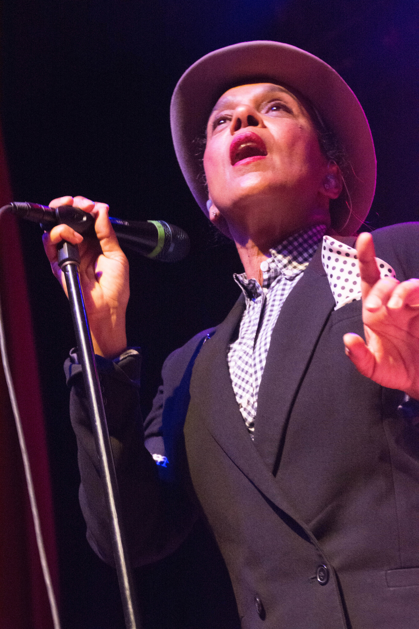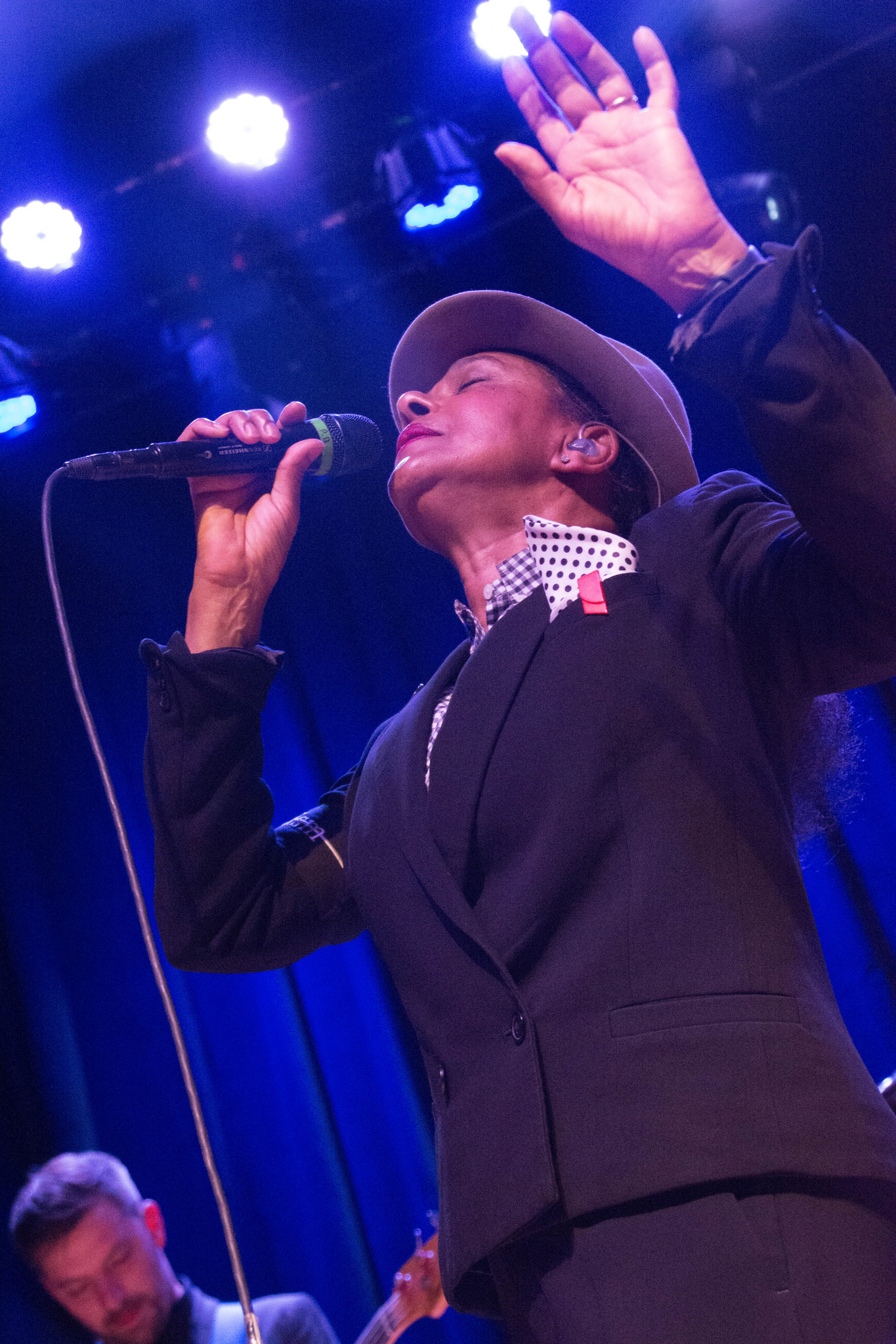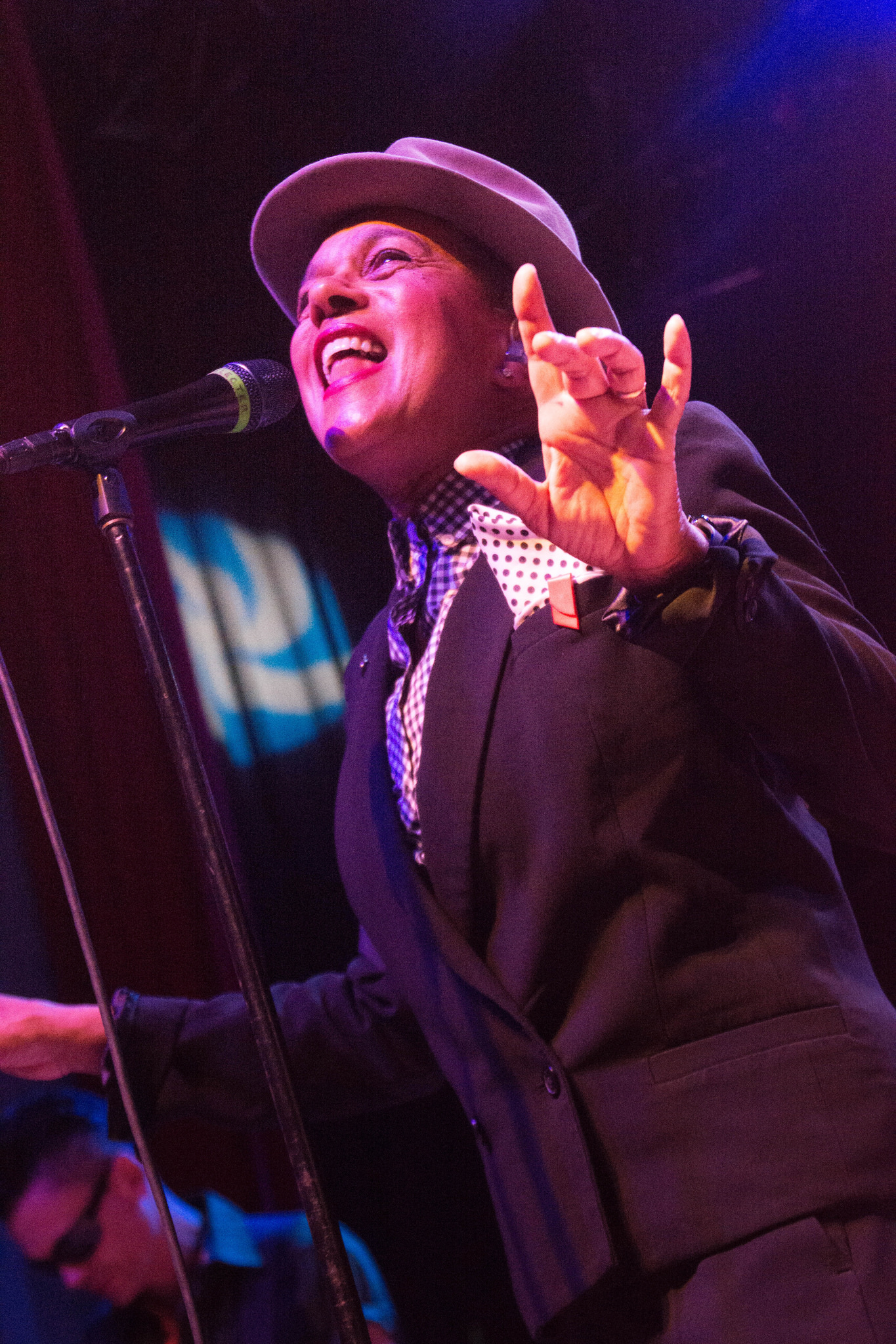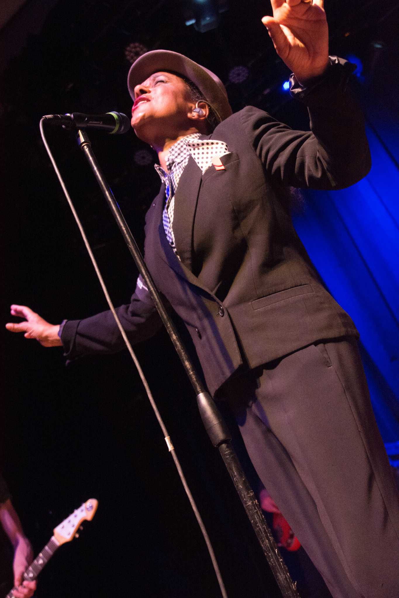 Will Crewdson played electric guitar and looking at him, he was probably not even alive yet when the Selecter was born in 1979. But he could play! He was a pro with the whammy bar and wore dark glasses almost the entire show giving him a bit of a sci-fi look. Bass player Luke Palmer and drummer Winston Marche kept things steady. The sound was so impeccable I could hear every single instrument.