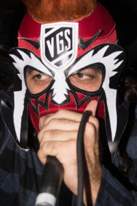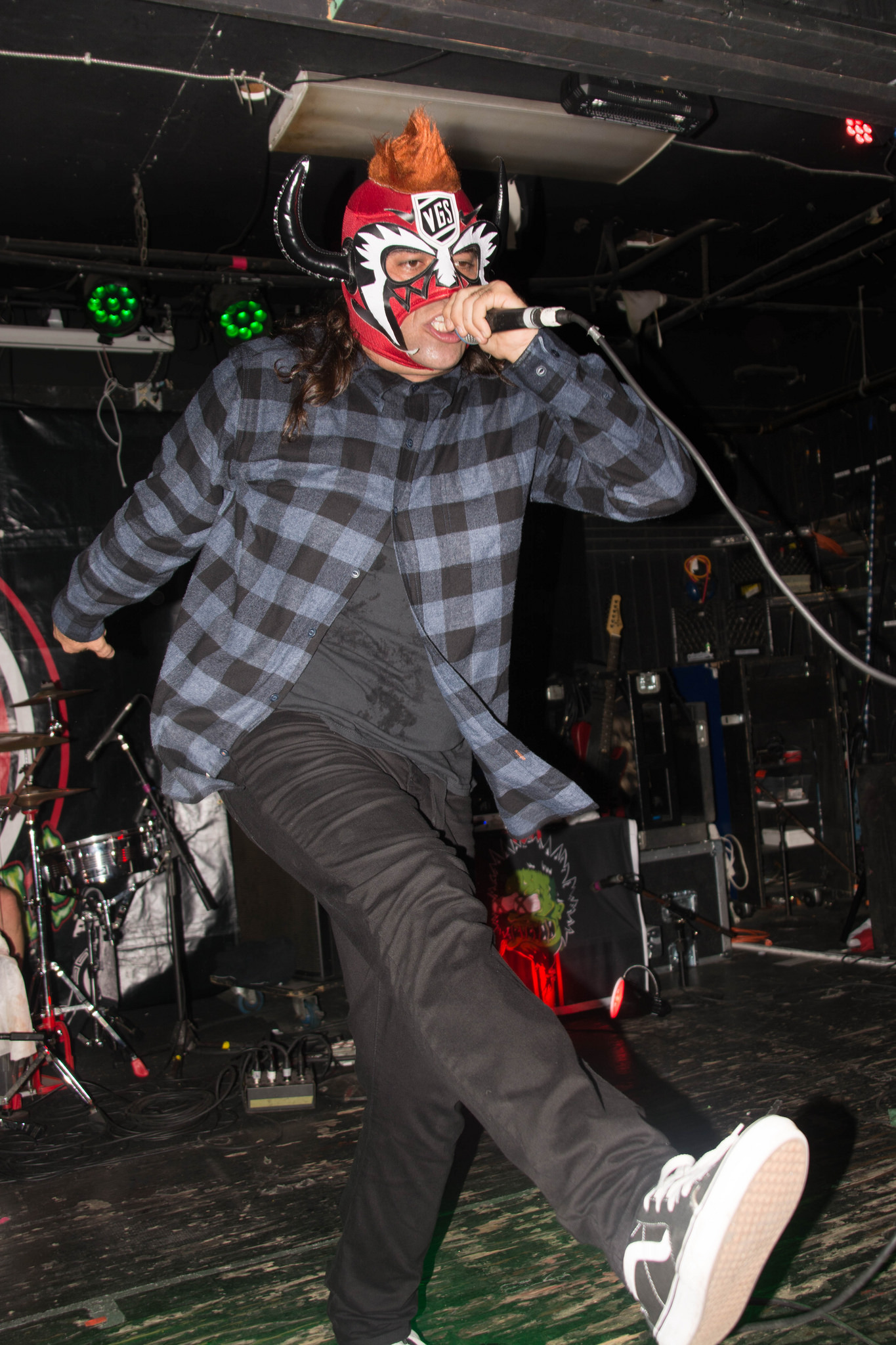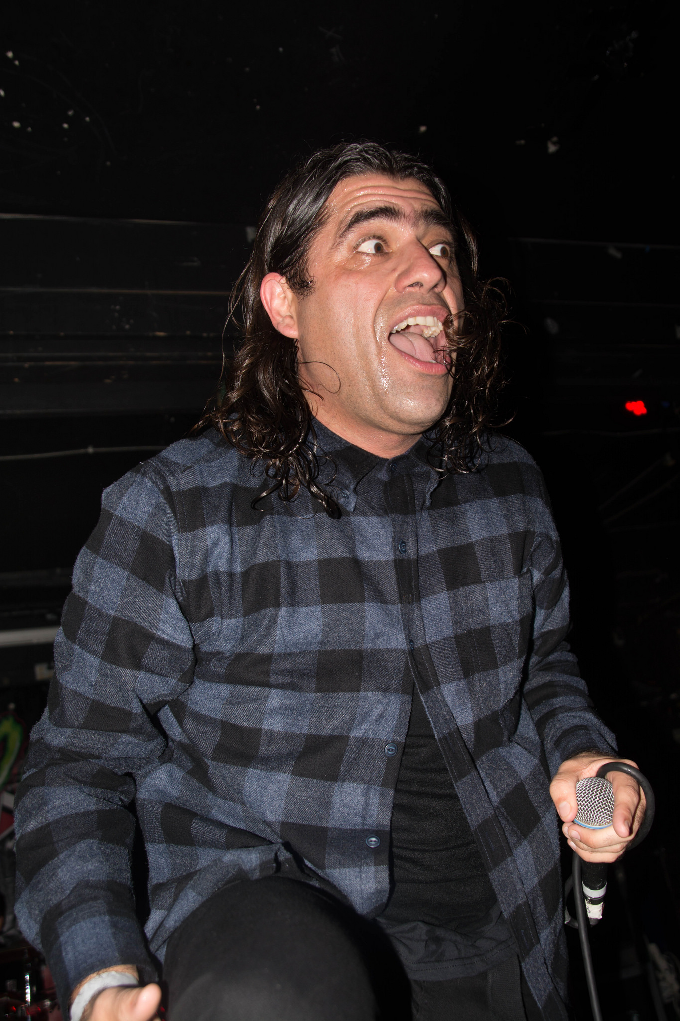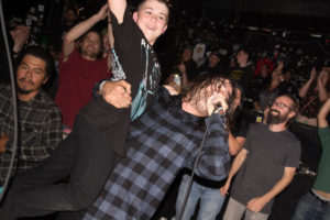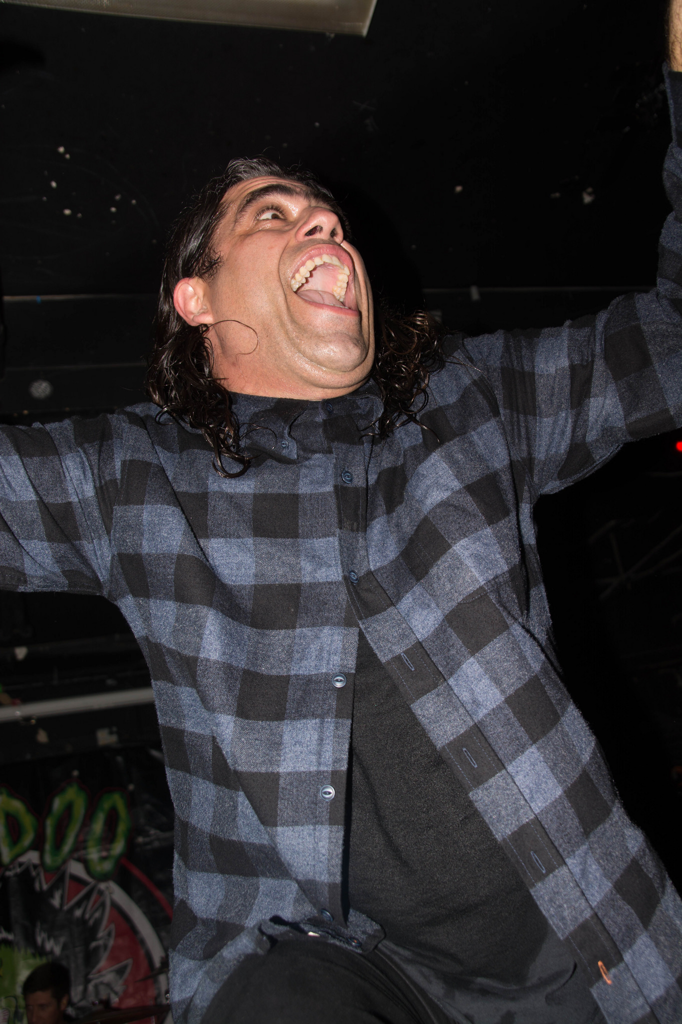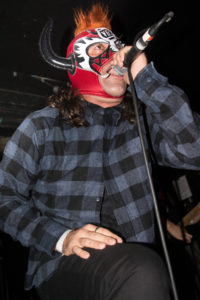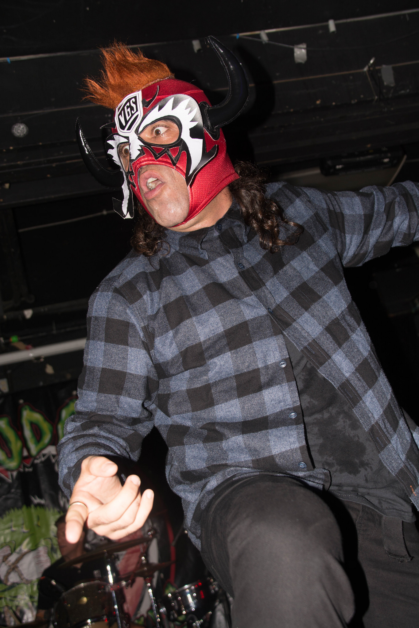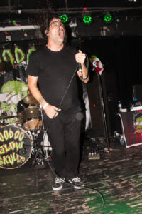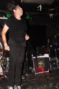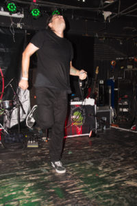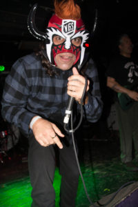 The band hit the stage with Shoot the Moon and Efram wearing a devil with a Mohawk mask. He was all over that stage, often leaning into the sparse crowd to rile them up. He ran about, often jumping or running in place. He stripped off the mask after about four or five songs. About half way through he jumped onto the dance floor and danced with audience members, sometimes putting his arms around him. There was a little boy about seven years old in the audience and he picked him up, spun him around, before placing him back down and returning to the stage. The look on the boy’s face was sheer elation.