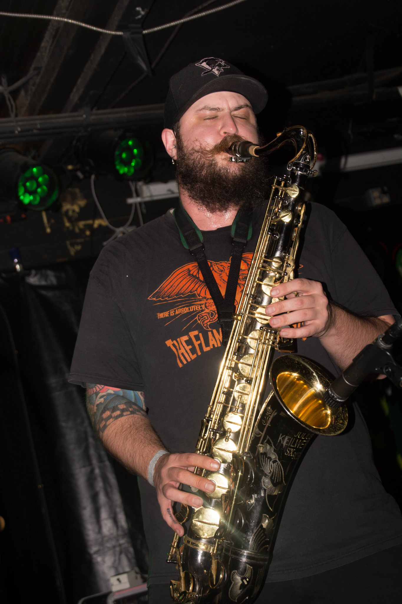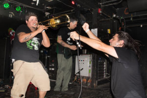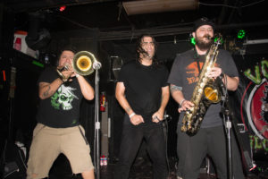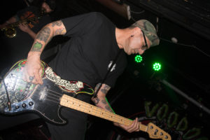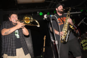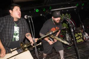 Playing before VGS was one of my favorite Seattle ska bands, It Gets Worse. It Gets Worse also went through personnel changes this summer and I wasn’t sure I would like them as well now that their charismatic singer Chelsea and guitarist and founding member Eric Stallard left the band. Suffice to say, my fears did not come to fruition and It Gets Worse has not gotten worse. They added a keyboard player (Ryan Mays) and his brother Tyler took over on lead guitar. Bass player James Sweazea was his usual class clown self and performed all lead vocals with the others singing harmony. James emoted and generally hammed it up, particularly on their final song, Iron Lung. The highlight had to be when the horn section (Andrew Adams- Trombone, Frank Smith- Tenor Saxophone, Peter Fink – Trombone and Sam Trowbridge- horn) leaped off the stage and marched in a circle encompassing the entire dance floor. JR Sorrells kept the beat going on drums. As I said, It Gets Worse hasn’t gotten worse.