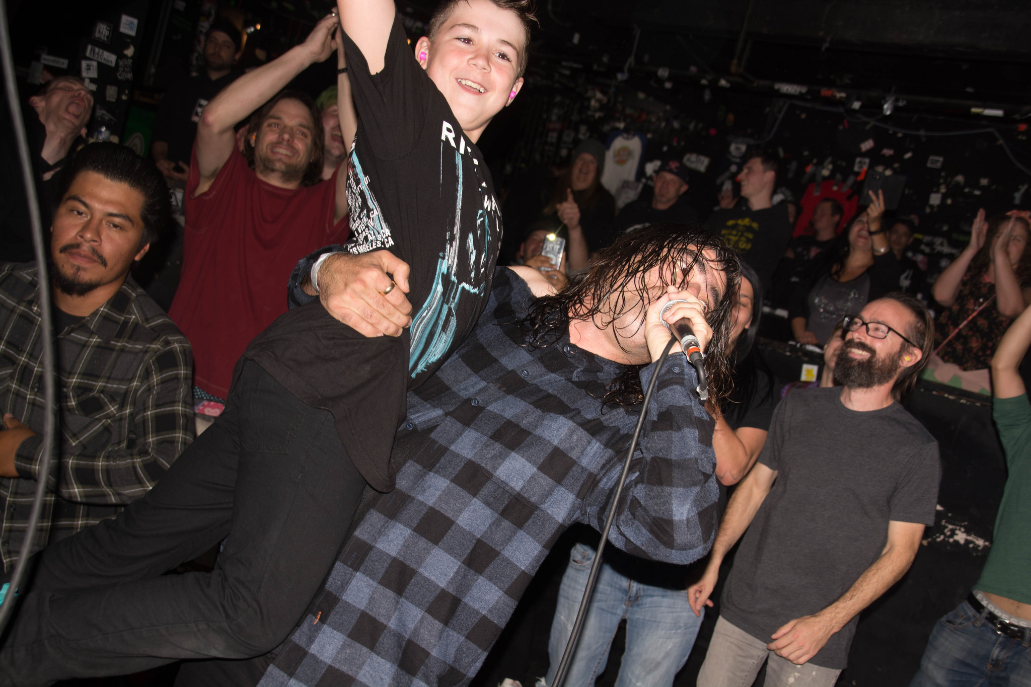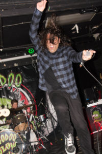 The Famished opened the night. This Seattle quartet was one I’d never seen nor heard of, but I was very impressed with their performance. Vocalist Walker White was fascinating as he strutted and staggered about the stage, growling and screaming into the mic. Their drummer (Chris Sorensen) looked like Santa Clause vacationing in Hawaii and never seemed to break a sweat despite the band’s hard driving sound. Their bass player (Jake Carden) resembled a young Jimmy Page. Add Ethan Overton on guitar and what emerged was some hard core punk to some more pop punk sounds. I hope these guys play around town some more. I really enjoyed their set.