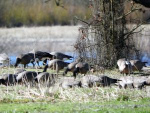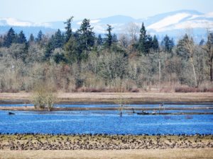 Most natives of Portland don’t need to be told that they live in a sea of natural beauty, but they may not be aware just how close some of the outdoor wonders are to their doorsteps. One of these is the Tualatin RIver National Wildlife Refuge, just off of Highway 99W a few miles southwest of downtown Portland. It’s 1,856 acres of reserved wetlands may not look extraordinary from a distance, but just a few steps from the visitor center parking lot, you can see the place for what it is: a major stop on the north-south West Coast flyway for geese and other migratory birds. On the day I visited, a flock of about two thousand Cackling Geese sat feeding by a pond not far from the visitors’ center, with many more groups flying in and out at a rate that would make Chicago’s O’Hare Airport look positively idle. It was a light day according to the staff, who noted that in peak migratory season the birds swarm the refuge like mosquitoes. From the camera equipment and binoculars I saw people carrying, it was apparent that the place is a major draw for birders, but even if you’re not anxious to add to your observation life list, the refuge is still worth not just one visit, but several over the course of the year to see the varieties of birds and other wildlife that pass through the area. Afterward, you will understand that when environmental groups spend time and effort to keep even small areas of wilderness unspoiled for the sake of biological diversity, they do so for good reason.