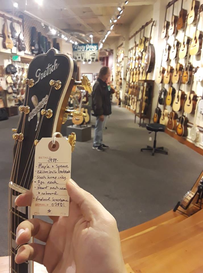 I held this old giant Gretsch guitar from the 1930s in my hands at Dusty Strings and that feeling came. A holy instrument from the dawn of popular music’s love affair with electricity.