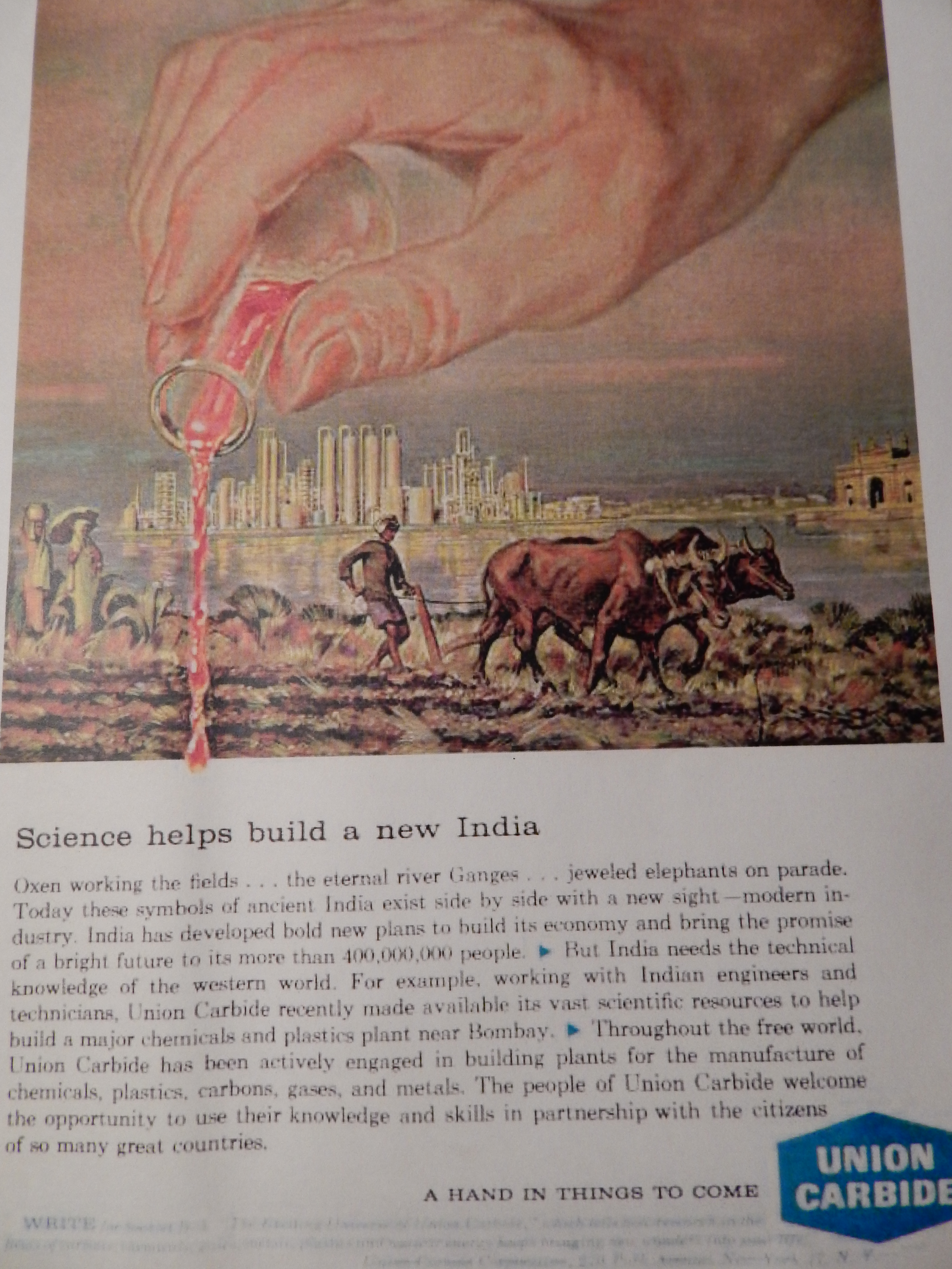 PS: The Union Carbide advertisement (above right) creepily looks like blood being spilled. And, of course, my man Al Jourgensen of Ministry wrote a song about the Bhopal spill two years later with one of his side projects, Revolting Cocks.