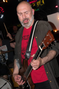 As mentioned a band called Clarko played prior to the Fleshies. This is a young band with no internet presence. They aren’t on FB or any other social media. They are a young band and they’re cute. I doubt any of them were over the age of 25. But they could play. Their lead singer had shoulder-length dark hair that constantly covered his face as he whipped it about. Their music was a variety of everything. I heard some goth, some punk and straight up rock. Since they have no social media presence I don’t know who is in the band, but they were a tight unit with great stage presence.