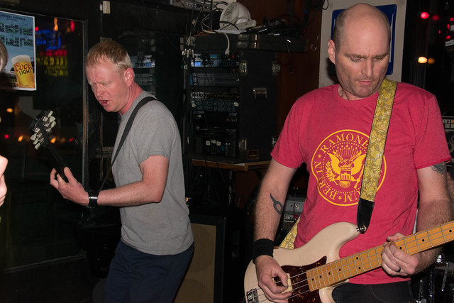 Starting the entire night was Scoff. This Seattle four-piece featured a charismatic singer (Knuck) and featured Gabor Hun, formerly of Sledgeback on guitar. Mr. Nate was on bass and Rob Spoon on drums (whose arms should have flown off after the first couple songs he slammed so wildly). Scoff played a straight up hard rock with heavy punk overtones – a fun, tight unit. Another night of punk rock and another night where I discovered more great bands.