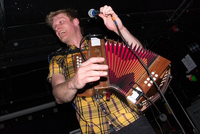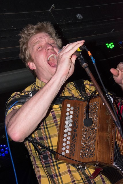 Playing prior to the Bronx was one of my favorites, Skinny Lister. I’ve seen these Brits now probably close to half a dozen times, but they never get boring. Singer Lorna Thomas, besides oozing unbridled charm, has powerful yet sweet vocals and when she’s not singing, she’s dancing about the stage non-stop. But I find that watching her, I miss something fun or crazy another band member does. Her brother Max Thomas played melodeon as well as provided harmony, but also goaded the audience, many of whom sang along to their songs. Skinny Lister plays a mostly Celtic music with punk overtones sprinkled in. This is not only a lively band, but versatile with some members playing more than one instrument. I used to think I was Skinny Lister’s biggest Seattle fan, but judging by the overwhelmingly enthusiastic response from the now filled club, I’m afraid I no longer bear that crown. Seattle loves Skinny Lister. The rest of Skinny Lister is, Dan Heptinstall – lead vocals, guitar, Thom Mills – drums, Sam “Mule” Brace – guitar, concertina, vocals, and Scott Milsom – double bass, Bass guitar and vocals.