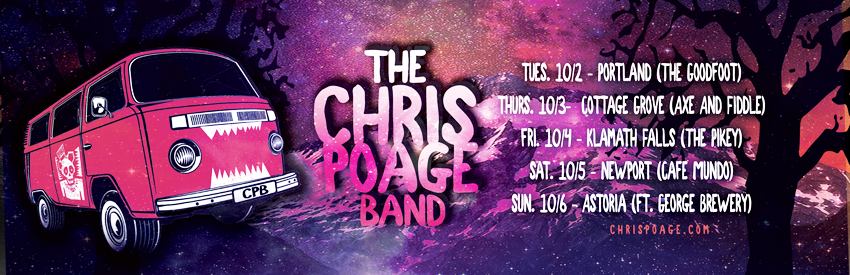A dynamic band which has a new album out there, the Chris Poage Band will be coming to Portland October 2 at 9pm to play at The Goodfoot (on Stark St., across from the awesome vegetarian food stand Canteen) with Portland legend Mike Coykendall. Here’s the FB event link for the Portland show. The will also be performing in Cottage Grove, Klamath Falls, Newport, and Astoria.
