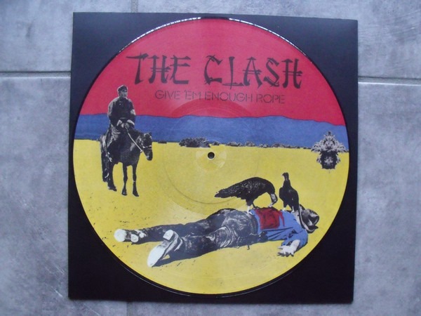 The Clash: GIVE ‘EM ENOUGH ROPE (“CBS Records”, UK, bootleg picture disc LP w/ two extra tracks—”Pressure Drop” & “1-2 Crush on You”, release date unknown)