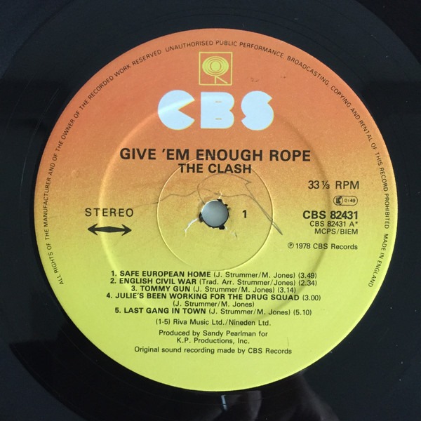 The Clash: GIVE ‘EM ENOUGH ROPE (CBS Records, UK/Ireland, original British jacket, 1978)
