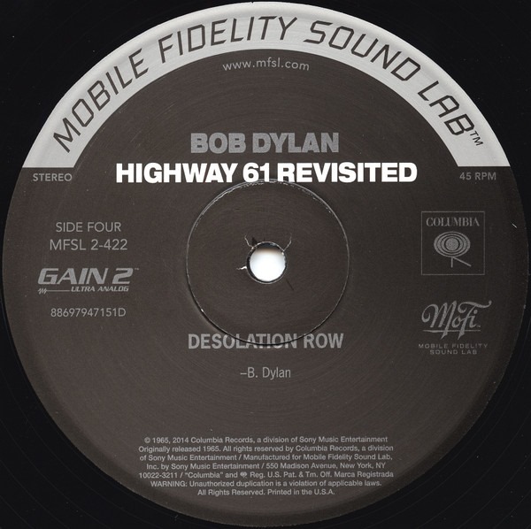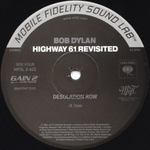 Bob Dylan: HIGHWAY 61 REVISITED (Mobile Fidelity Sound Lab, “Gain 2™ Ultra Analog 45RPM 180g Series”, 2 x 12-inch 45 RPM 180-gram LPs, 2014)