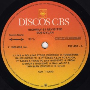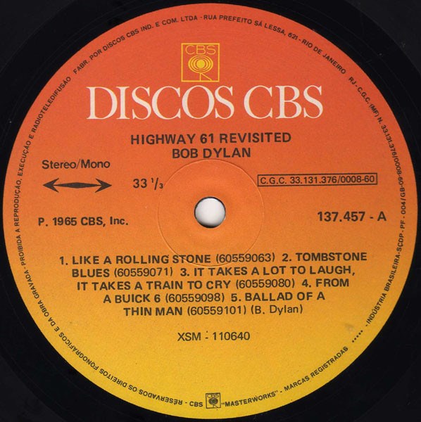 Bob Dylan: HIGHWAY 61 REVISITED (CBS Records, Brazil, stereo LP reissue, 1976)