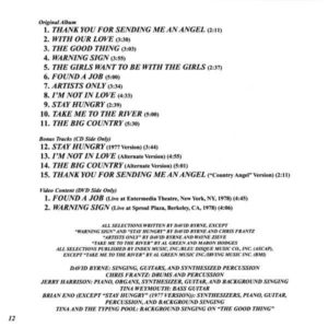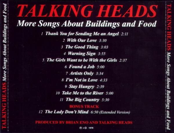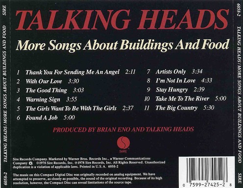 Talking Heads: MORE SONGS ABOUT BUILDINGS AND FOOD (Sire Records, US, compact disc reissue, 1987)