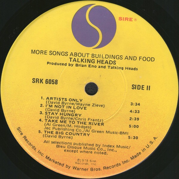 Talking Heads: MORE SONGS ABOUT BUILDINGS AND FOOD (Sire Records, US, LP, 1978)