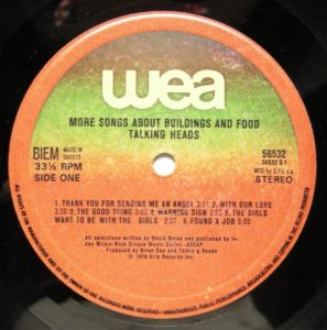 Talking Heads: MORE SONGS ABOUT BUILDINGS AND FOOD (WEA Records, Greece, LP, 1978)