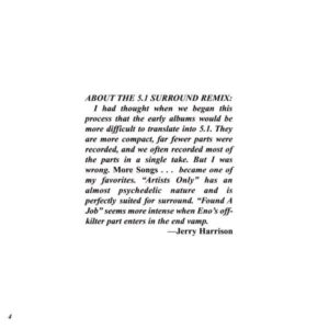 Talking Heads: MORE SONGS ABOUT BUILDINGS AND FOOD (Sire/Warner Bros./Rhino Records, compact disc + DVD-Audio 2-disc reissue, 2006)