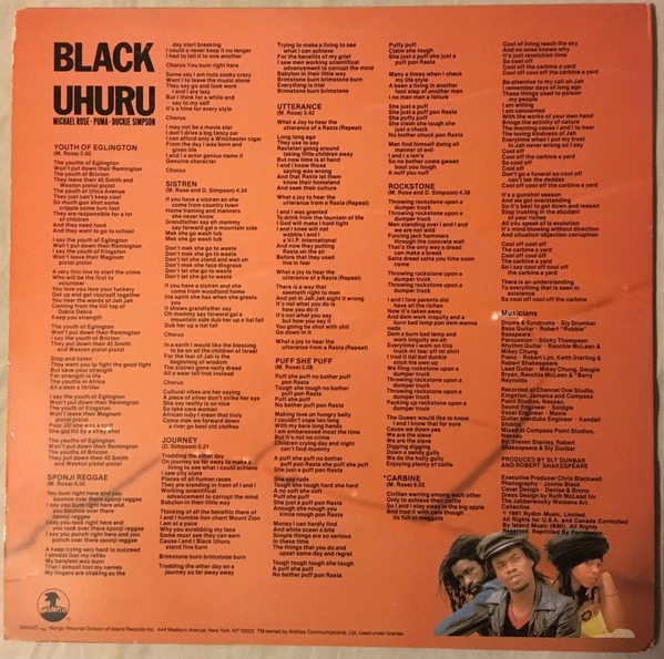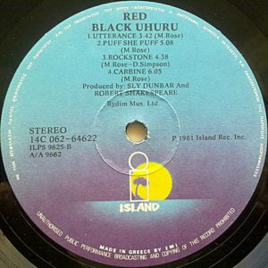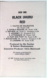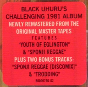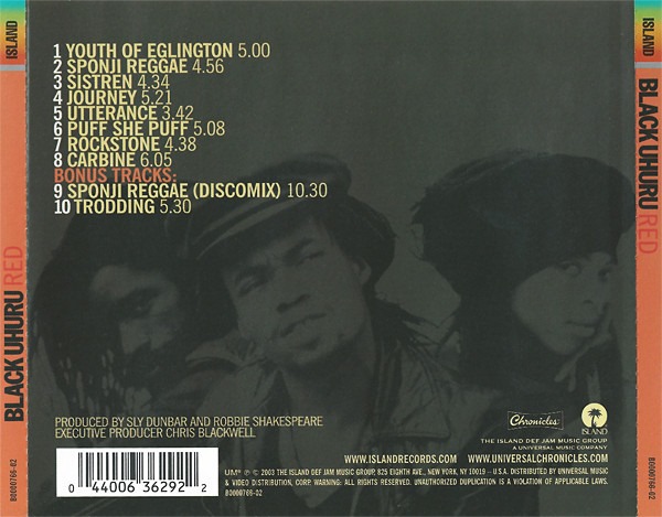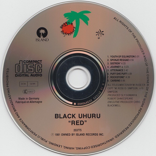 Black Uhuru: RED (Island/Chronicles Records, US, compact disc reissue w/ 2 bonus cuts, including the epic 10:30 version of “Sponji Reggae (Discomix)”, 2003)