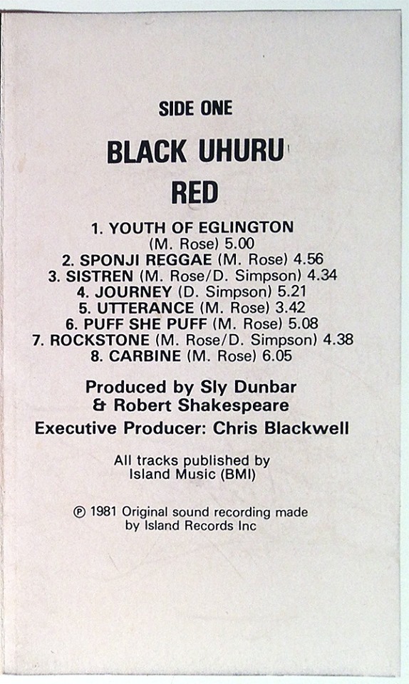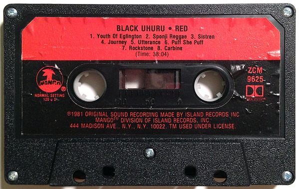 Black Uhuru: RED (Mango Records, US, cassette tape, “1 + 1” release—w/ blank side two, 1981)