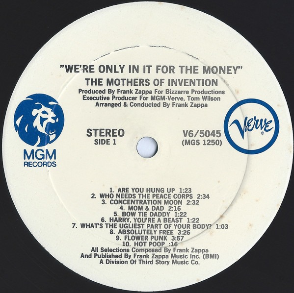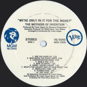The Mothers of Invention: WE’RE ONLY IN IT FOR THE MONEY (Verve/MGM Records, US, LP reissue, 1974)