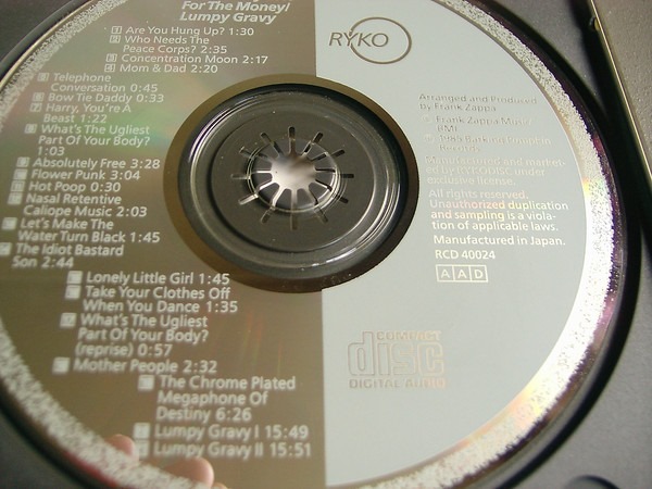 Frank Zappa: WE’RE ONLY IN IT FOR THE MONEY/LUMPY GRAVY (Rykodisc, US, compact disc reissue w/ LUMPY GRAVY album added as a bonus—controversial/anemic new drum & bass parts overdubbed onto the original recordings, 1986)