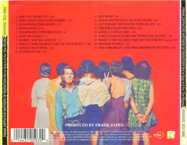 The Mothers of Invention: WE’RE ONLY IN IT FOR THE MONEY (Rykodisc, US, definitive compact disc reissue of original 1968 master recording, 1995)